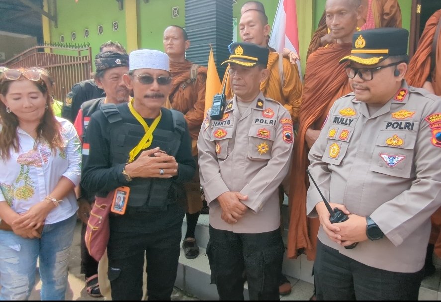 Temanggung – Polres Temanggung, Polda Jateng melaksanakan pengamanan kegiatan perjalanan 34 Biksu Tudong yang berasal dari berbagai negara yaitu Thailand, Kamboja, Malaysia dan Amerika Serikat yang menempuh jalur dari Semarang menuju ke Candi Borobudur melewati Kabupaten Temanggung.