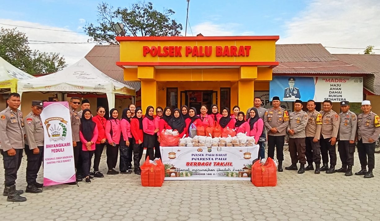 Palu- Detiksatu.id//Dalam semangat berbagi berkah di bulan suci Ramadan, Kapolsek Palu Barat Iptu Makmur Johan. S. Sos, bersama anggota Polsek Palu Barat serta ibu Ketua Bhayangkari Ranting Palu Barat melaksanakan kegiatan pembagian takjil gratis kepada masyarakat, khususnya para pengguna jalan yang beraktivitas di sore hari menjelang berbuka puasa. Kegiatan ini berlangsung pada Senin (24/3/2025), bertempat di depan Mako Polsek Palu Barat, jln. Datu Pamusu Kelurahan Baru Kecamatan Palu Barat.
