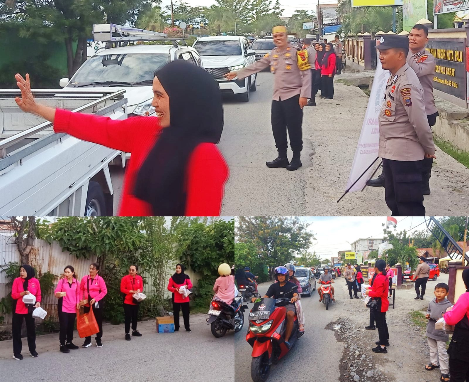 Sebanyak 250 dos paket Takjil dibagikan kepada masyarakat yang melintas di depan Mako Polsek Palu Barat.
