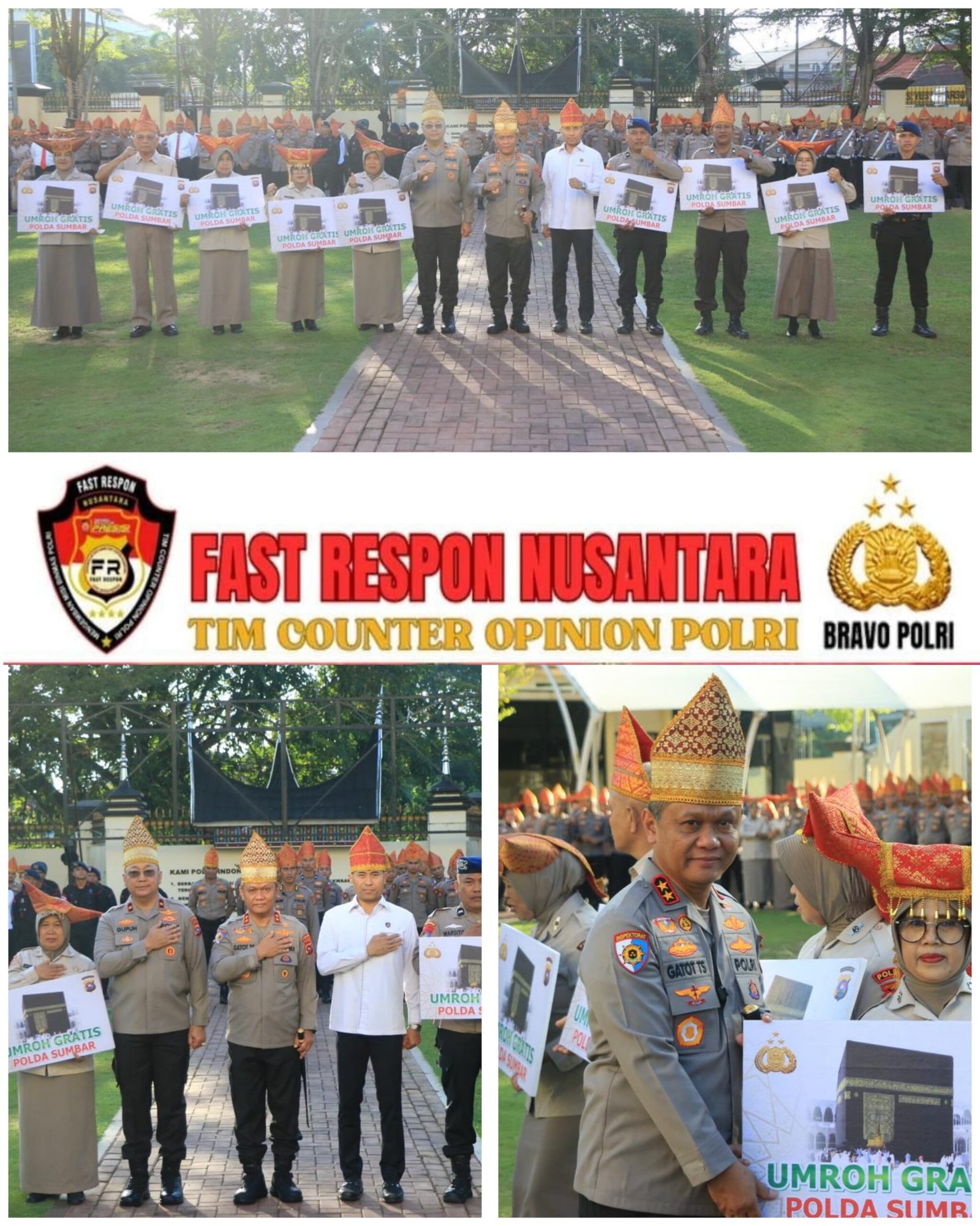 Sumbar, Detiksatu.id – Kapolda Sumatera Barat, Irjen Pol. Drs. Gatot Tri Suryanta, M.Si., CSFA, memberikan hadiah umrah gratis kepada 12 personel Polda Sumbar dalam apel pagi yang digelar di Lapangan Apel Mapolda Sumbar, Rabu (7/5).