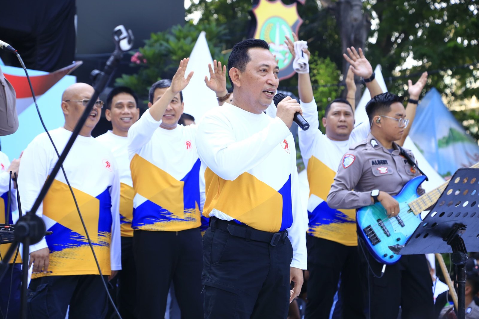 Kapolri tampil diiringi oleh Cakra Metro Band, grup musik dari Ditlantas Polda Metro Jaya. Penampilan ini disambut antusias warga yang ikut bernyanyi dan menikmati hiburan tersebut.