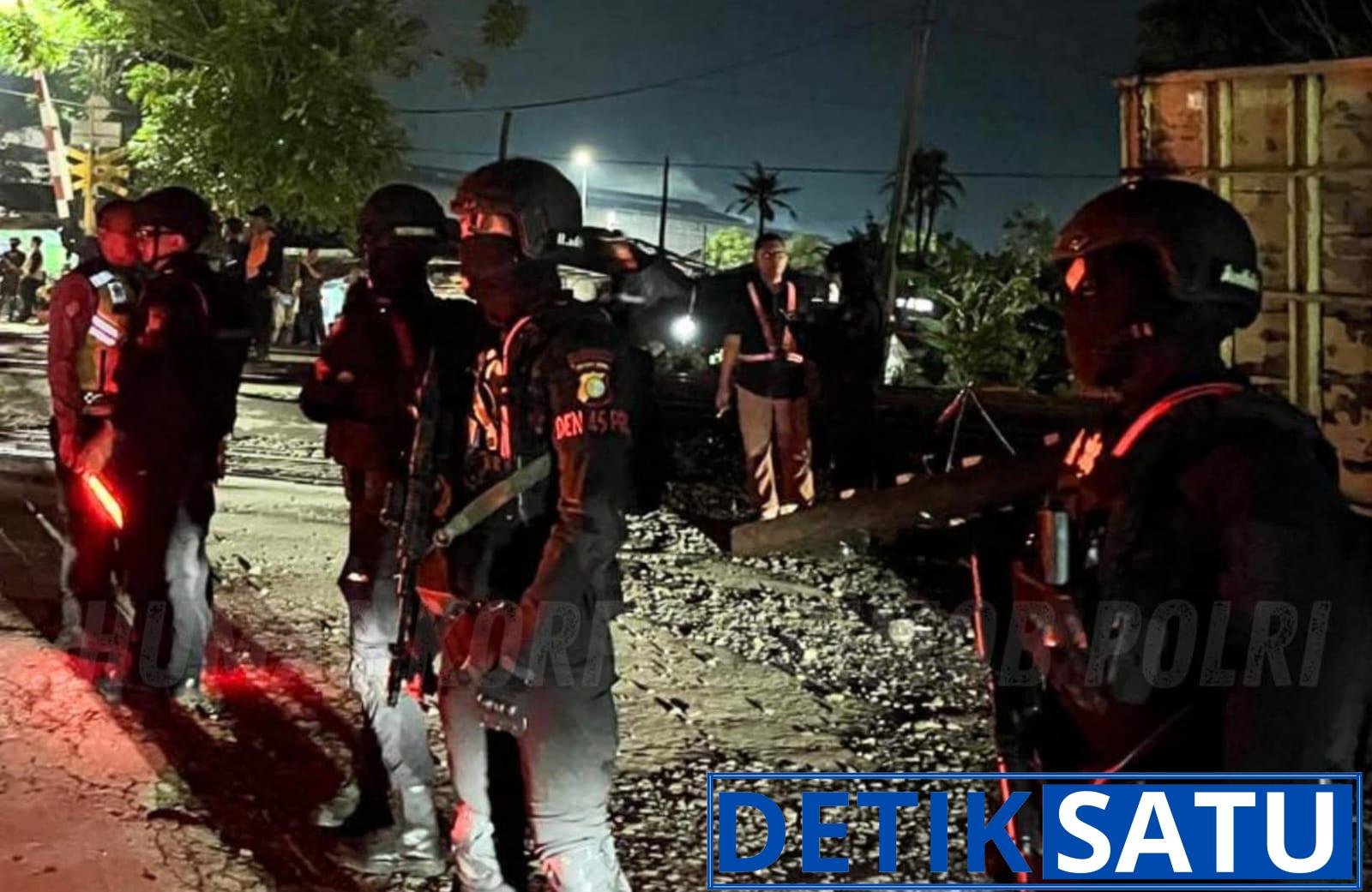 Bekasi, Detiksatu.id — Personel Brimob Polda Metro Jaya dari Batalyon D Pelopor diterjunkan untuk membantu pengamanan dan pengaturan lalu lintas di lokasi anjloknya Kereta Api Purwojaya jurusan Cilacap–Gambir di kawasan Kedung Waringin, Kabupaten Bekasi, Sabtu malam (25/10).