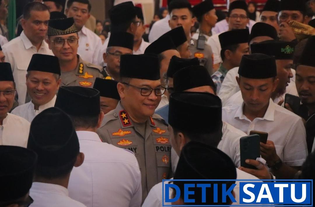 Bandar Lampung, Detiksatu.id – Kapolda Lampung Irjen Pol Helmy Santika, menegaskan komitmen Polri untuk selalu membuka ruang dialog bagi seluruh elemen masyarakat, termasuk kalangan ulama dan santri, dalam menjaga keharmonisan sosial dan kepercayaan publik terhadap institusi kepolisian. Hal tersebut disampaikan Kapolda saat menerima secara langsung aspirasi dari para ulama dan santri dari berbagai pondok pesantren di Provinsi Lampung di Gedung Serba Guna (GSG) Presisi Polda Lampung, pada Rabu (15/10/2025).