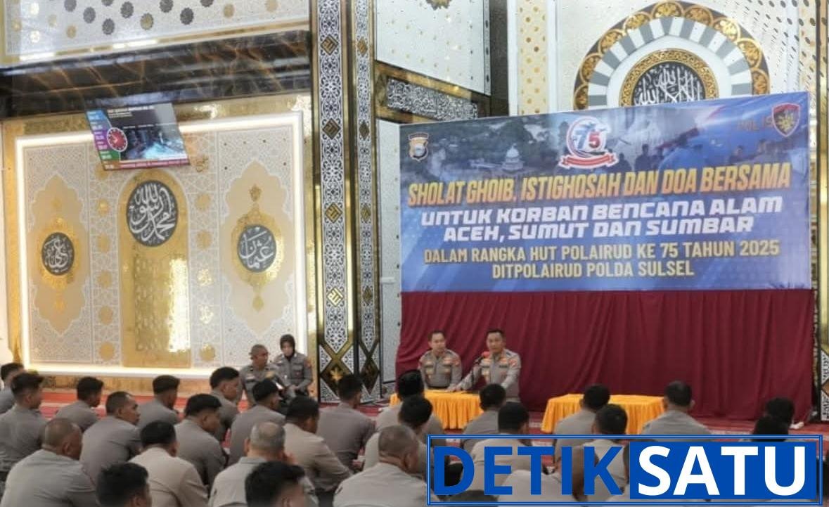 Makassar, Detiksatu.id – Direktorat Kepolisian Perairan dan Udara (Dit Polairud) Polda Sulsel menggelar kegiatan istighosah dan sholat gaib dalam rangka memperingati Hari Ulang Tahun (HUT) ke-75 Polairud Tahun 2025, bertempat di Masjid Nur Syuhada Mapolda Sulsel, Senin (01/12/2025).