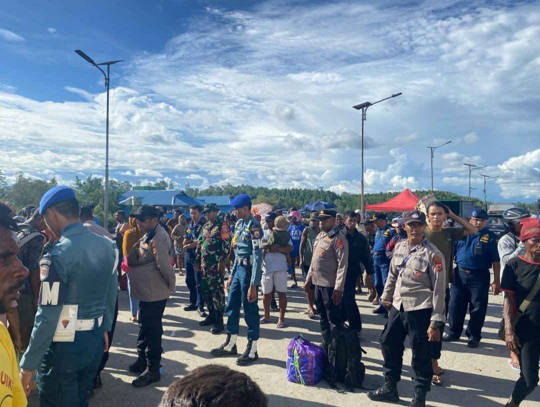 Detiksatu.id – Polres Mimika, Polda Papua Tengah – Personel gabungan dari TNI AL, TNI AD, dan POLRI melakukan kegiatan pengamanan terhadap kedatangan kapal penumpang KM. Tatamailau yang tiba dari Kabupaten Dobo, Provinsi Maluku, dan sandar di Dermaga Pelabuhan Pomako pada Minggu (6/4) sekitar pukul 14.50 WIT.