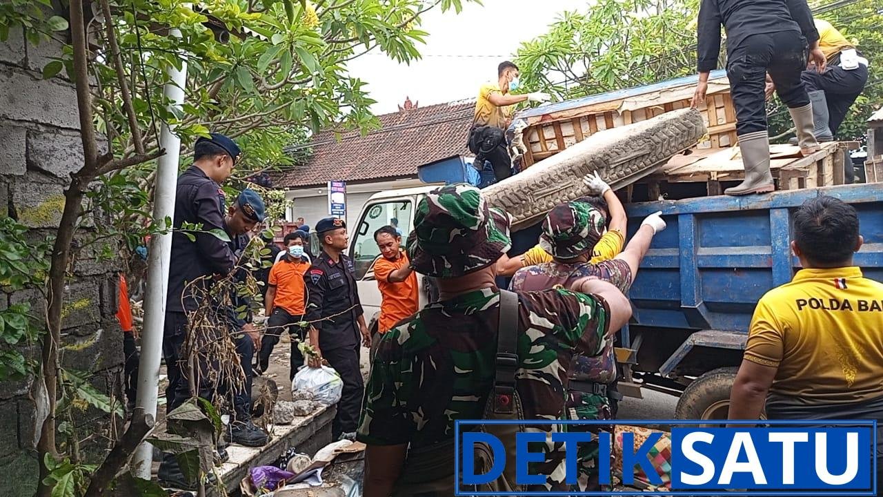 Dalam aksi gotong royong tersebut, para personel dan warga bersama-sama membersihkan lingkungan yang sebelumnya dipenuhi lumpur, sampah, dan material sisa banjir. Pembersihan dilakukan di beberapa titik lokasi dengan sistem pembagian kelompok kerja. Sampah dan material banjir diangkut menggunakan truk DLHK Kota Denpasar, mobil pick up, hingga alat sederhana milik warga. Bahkan, alat berat juga turut diturunkan untuk mempercepat proses normalisasi lingkungan, khususnya pada area yang terdampak cukup parah dan sulit dibersihkan secara manual.