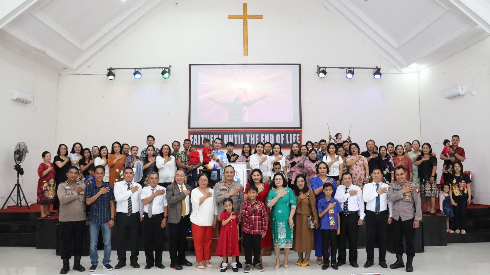 Kedatangan Kapolres beserta keluarga dan turut didampingi Kasatbinmas Iptu Normandi, S.P., M.M. disambut hangat oleh Pdt. Jeff D Matulandi, S.Th. beserta pengurus dan jemaat gereja.