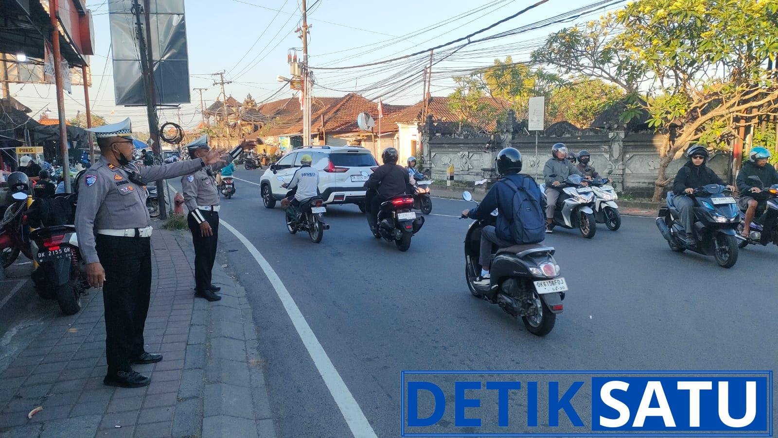 Selain mengatur arus lalu lintas, petugas juga memberikan imbauan kepada pengendara agar selalu mematuhi aturan berlalu lintas, menggunakan helm, serta mengutamakan keselamatan.