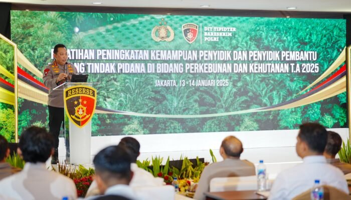 Jakarta. Kapolri Jenderal Pol. Listyo Sigit Prabowo menghadiri kegiatan pelatihan peningkatan kemampuan penyidik dan penyidik pembantu tindak pidana di bidang perkebunan dan kehutanan.