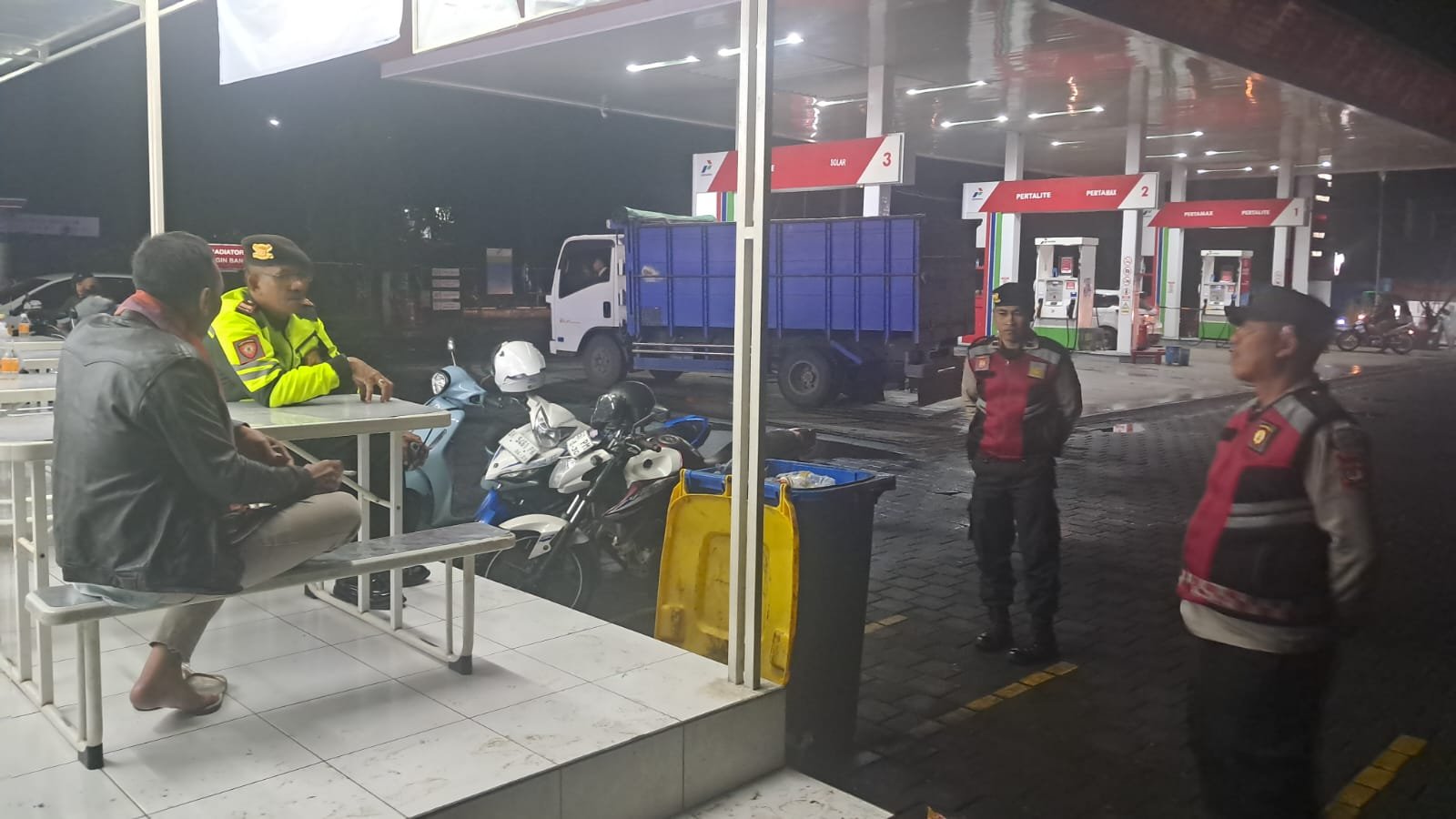Blue Light Patrol guna antisipasi kegiatan masyarakat di malam hari, Kemudian pawas bersama anggota menyambangi tempat ibadah, Obvit SPBU, Pemukiman penduduk, Pasar Kidul dan Obvit Perbankan serta tempat keramaian Warga lainnya.
