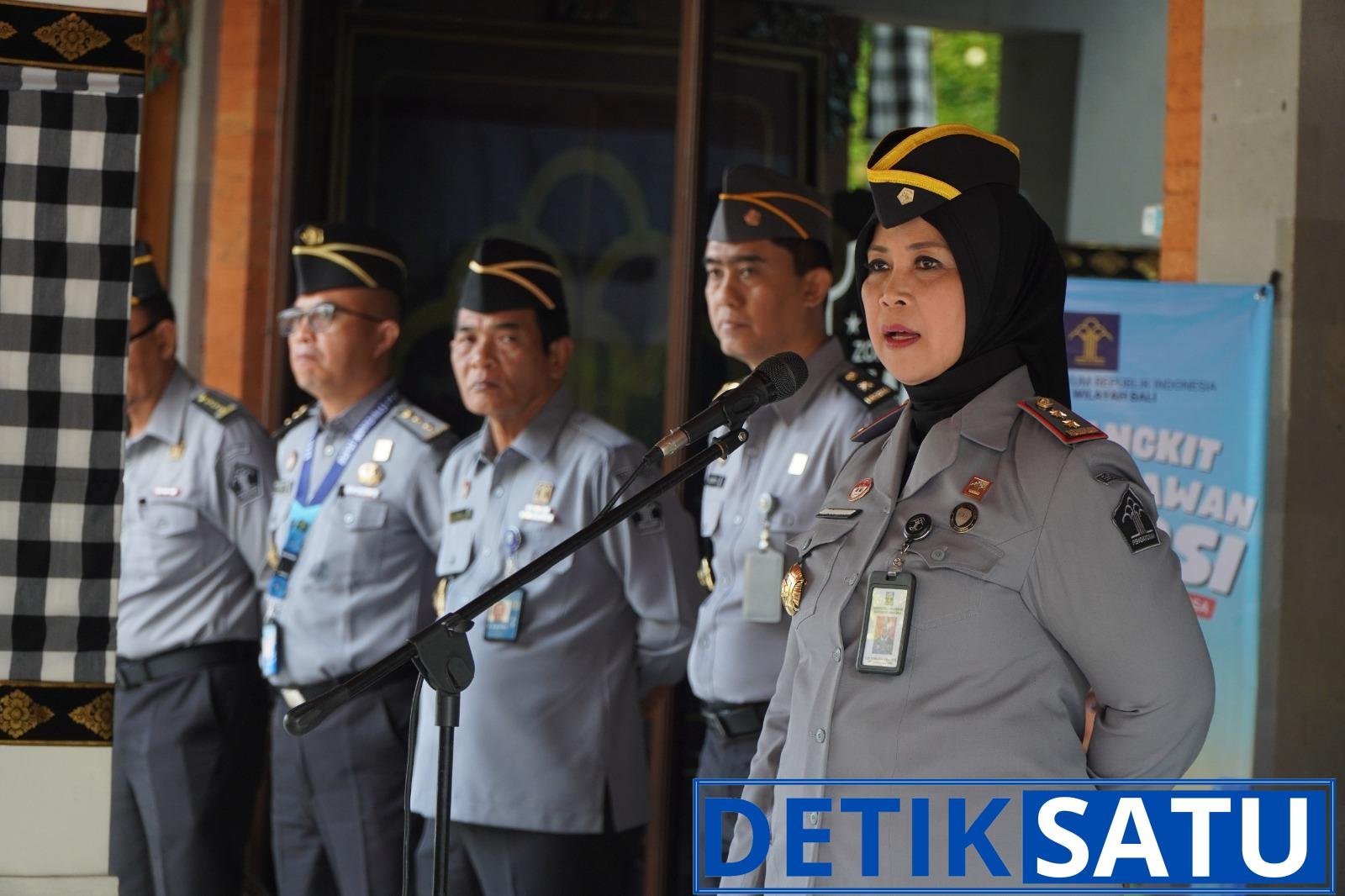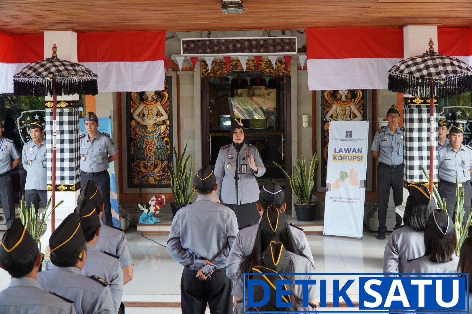 Kepala Kantor Wilayah Kementerian Hukum (Kakanwil Kemenkum) Bali, Eem Nurmanah, menegaskan kepada seluruh jajaran untuk meningkatkan sinergi serta komitmen bersama guna mensukseskan langkah Kanwil Kemenkum Bali dalam meraih predikat Wilayah Birokrasi Bersih dan Melayani (WBBM). Hal ini disampaikannya saat memimpin apel pagi bertempat di halaman depan Kanwil, pada Senin (25/08/2025).
