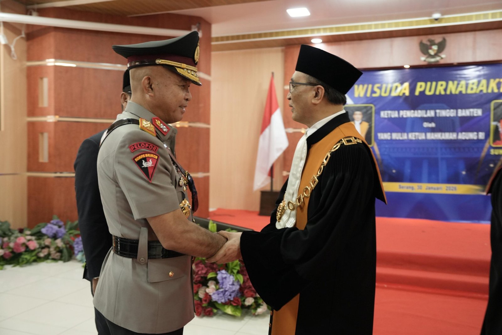 Serang, Detiksatu.id – Kapolda Banten Irjen Pol Hengki menghadiri Wisuda Purnabakti Ketua Pengadilan Tinggi Banten Dr. H. Suharjono yang bertempat di Ruang Sidang Utama Pengadilan Tinggi Banten, Kota Serang pada Jum’at (30/01).