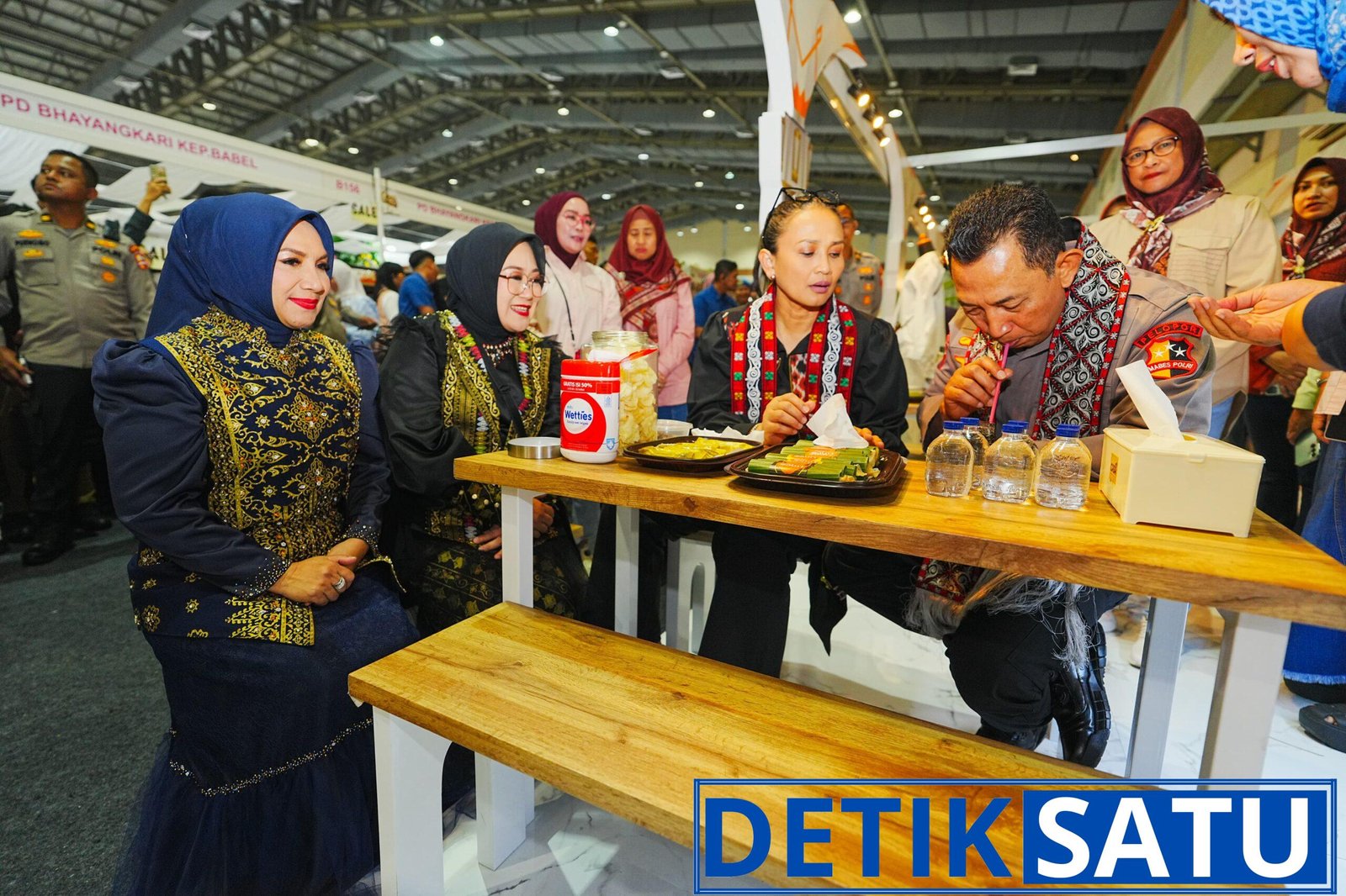 Kapolri Jenderal Polisi Drs. Listyo Sigit Prabowo bersama Ketua Umum Bhayangkari Ny. Juliati Sigit Prabowo menyempatkan diri menikmati kupi khop—kopi khas Aceh—saat mengunjungi stan Pengurus Daerah (PD) Bhayangkari Aceh dalam ajang Bazar Kreasi Bhayangkari Nusantara 2025 di Jakarta Convention Center (JCC), pada Minggu (27/07/2025) kemarin.