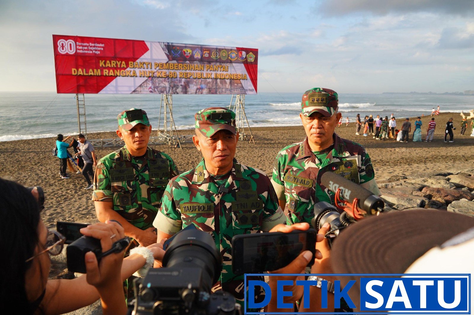 Sementara itu, Kasdam Brigjen Taufiq mengajak seluruh elemen masyarakat untuk bersatu dalam aksi nyata mengatasi persoalan sampah, tidak hanya di kawasan pantai tetapi juga dimulai dari lingkungan terdekat masing-masing.
