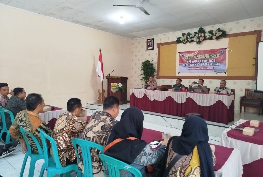 Batang – Dalam rangka Operasi Aman Candi 2025, Satuan Tugas Pembinaan Masyarakat (Satgas Binmas) menggelar kegiatan bimbingan, penyuluhan, dan sosialisasi di Aula Kecamatan Tersono. Acara ini dihadiri oleh para kepala desa, perangkat desa, tokoh masyarakat, tokoh agama, dan tokoh pemuda.