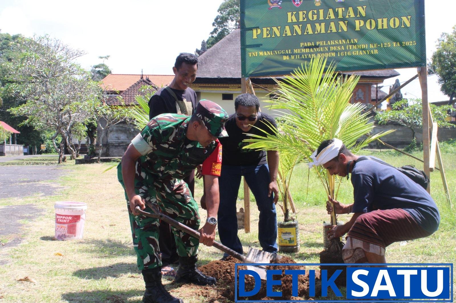 Memasuki hari ke-20 pelaksanaan TNI Manunggal Membangun Desa (TMMD) ke-125, Satgas TMMD Kodim 1616/Gianyar melaksanakan kegiatan penghijauan dengan menanam 250 pohon berbagai jenis di lahan Desa Adat yang tersebar di wilayah Desa Batuan, Kecamatan Sukawati. Lahan yang digunakan seluas 1 hektare ini ditanami pohon upakara, pohon keras, dan pohon buah sebagai langkah pelestarian lingkungan sekaligus peningkatan potensi ekonomi warga.