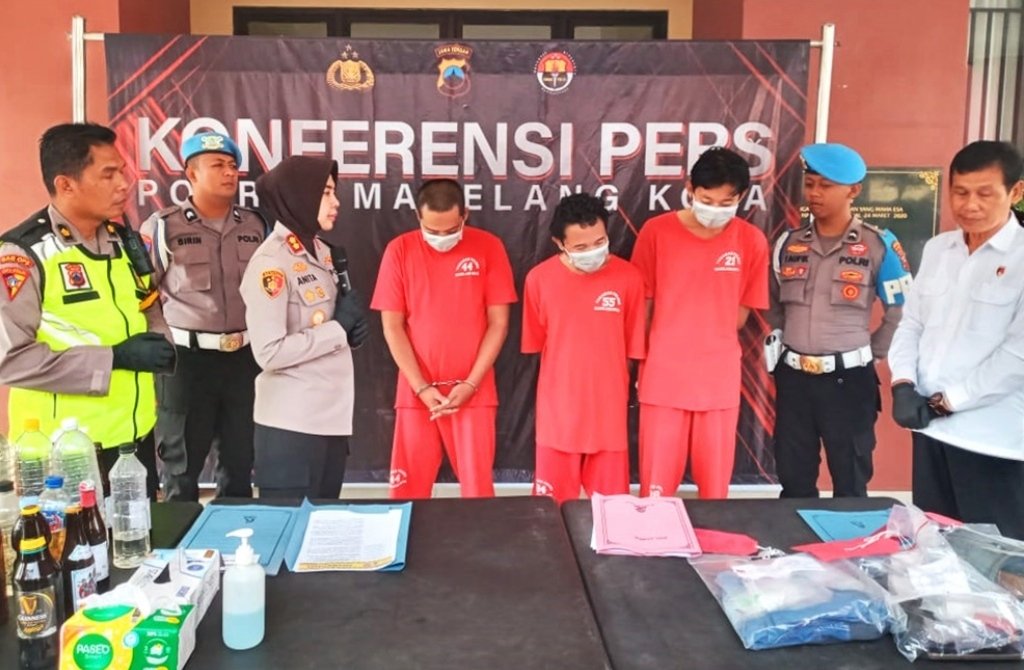 Dalam Konferensi Pers tersebut dihadirkan sejumlah Pelaku kasus narkoba yang berhasil diamankan Satresnarkoba Polres Magelang Kota. Serta sejumlah Barang Bukti (BB) seperti minuman keras (Miras) berbagai kemasan, jenis dan merk dan BB lainnya. (N)