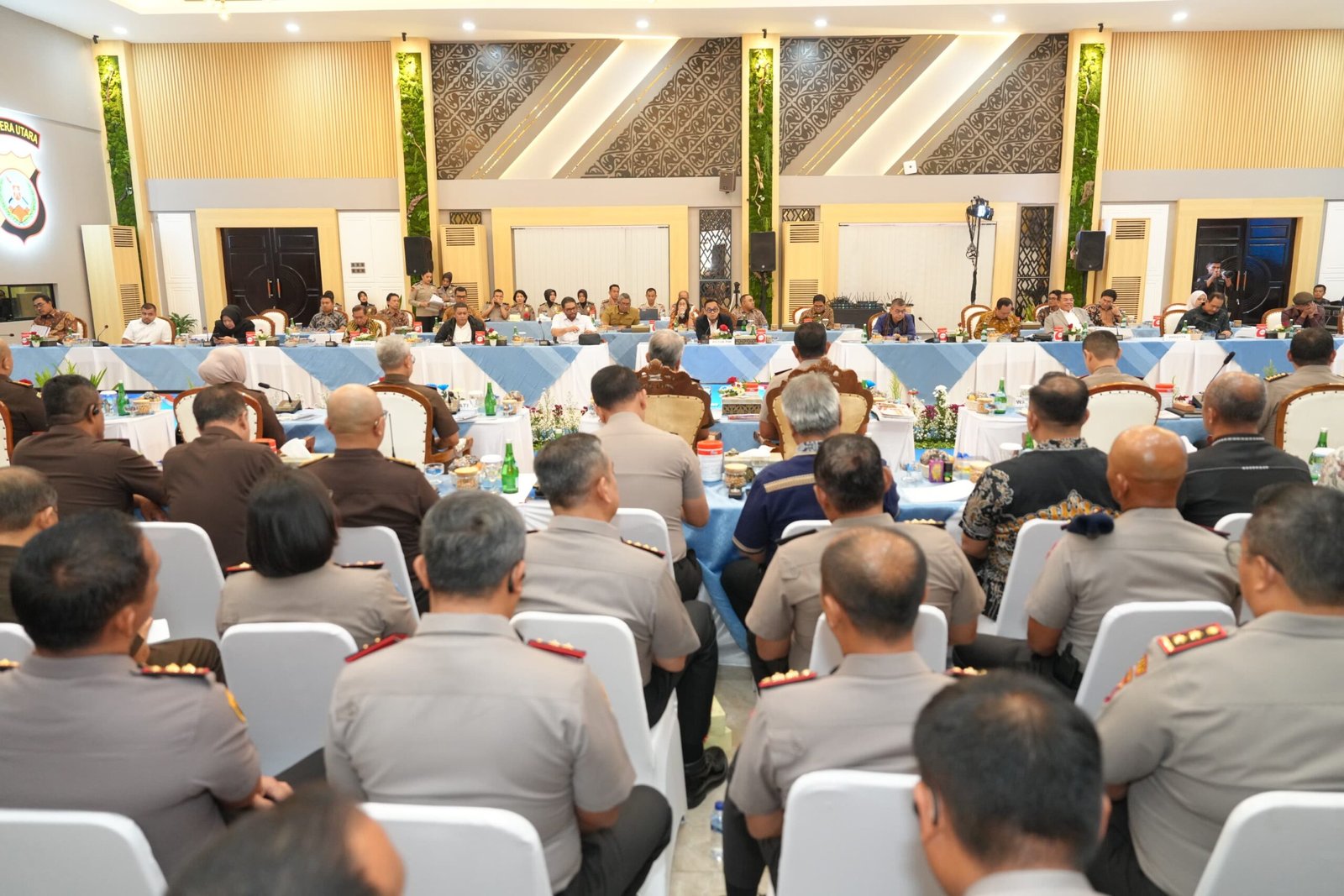 Turut hadir dalam kegiatan ini Kapolda Sumatera Utara Irjen Pol. Whisnu Hermawan Februanto, S.I.K., M.H., bersama para Pejabat Utama (PJU) Polda Sumut serta para Kapolres jajaran. Hadir pula Kajati Sumatera Utara Dr. Harli Siregar, S.H., M.Hum, bersama para Kepala Kejaksaan Negeri (Kajari) di wilayah Sumatera Utara.