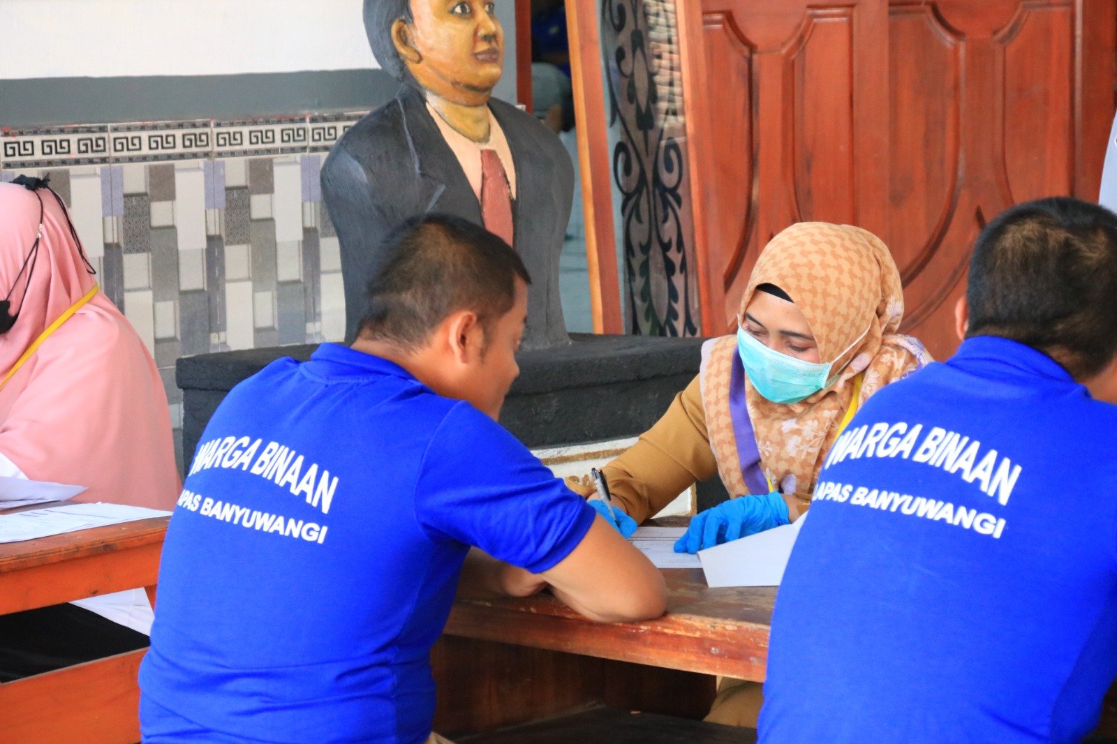 Petugas kesehatan dari Puskesmas Mojopanggung juga memberikan edukasi kepada warga binaan mengenai pentingnya pencegahan HIV/AIDS serta pola hidup sehat.