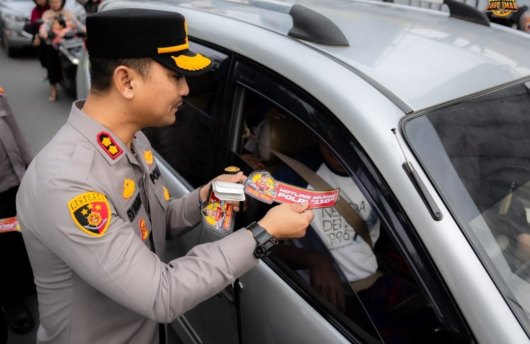 Batang – Polri berkomitmen untuk wujudkan lebaran aman dan nyaman melalui Operasi Ketupat 2025 dengan terus memberikan pelayanan yang terbaik untuk Masyarakat. Salah satu upaya yang dilakukan Polres Batang adalah menyosialisasikan layanan call center 110 untuk panggilan darurat. Sosialisasi ini menyasar berbagai kalangan masyarakat, baik pemudik maupun warga lokal yang beraktivitas di jalan protokol, pusat perbelanjaan, dan pusat keramaian lainnya.