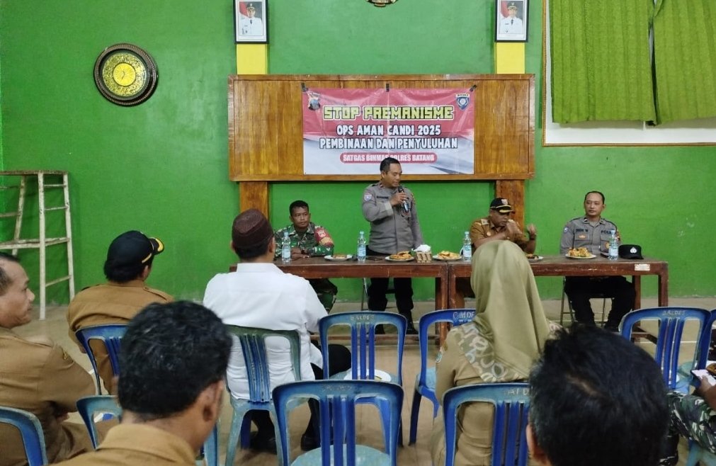 Batang – Dalam rangka menciptakan situasi kamtibmas yang kondusif, Satgas Binmas Polres Batang melaksanakan kegiatan pembinaan dan penyuluhan (Binluh) serta sosialisasi Operasi Kepolisian Aman Candi 2025 pada hari Selasa, 27 Mei 2025, pukul 09.00 WIB di Desa Penyangga Kawasan Industri Terpadu Batang (KITB), Desa Ketanggan, Kecamatan Gringsing, Kabupaten Batang.