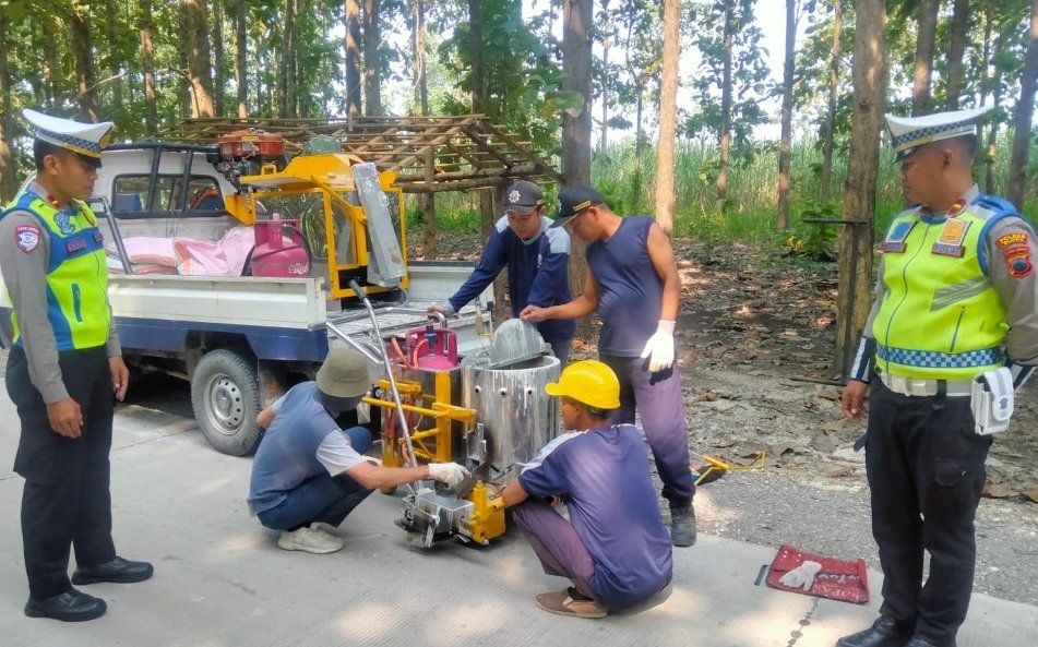 BLORA – Satlantas Polres Blora bersama Dinas Perumahan dan Permukiman Kabupaten Blora menggelar kegiatan pemasangan pita kejut di Dukuh Getas, Desa Getas, Kecamatan Kradenan, Kabupaten Blora, pada Rabu, 16 April 2025. Kegiatan yang dimulai pukul 08.00 WIB ini bertujuan untuk mencegah kecelakaan lalu lintas dan menekan aksi balap liar di wilayah hukum Polres Blora.