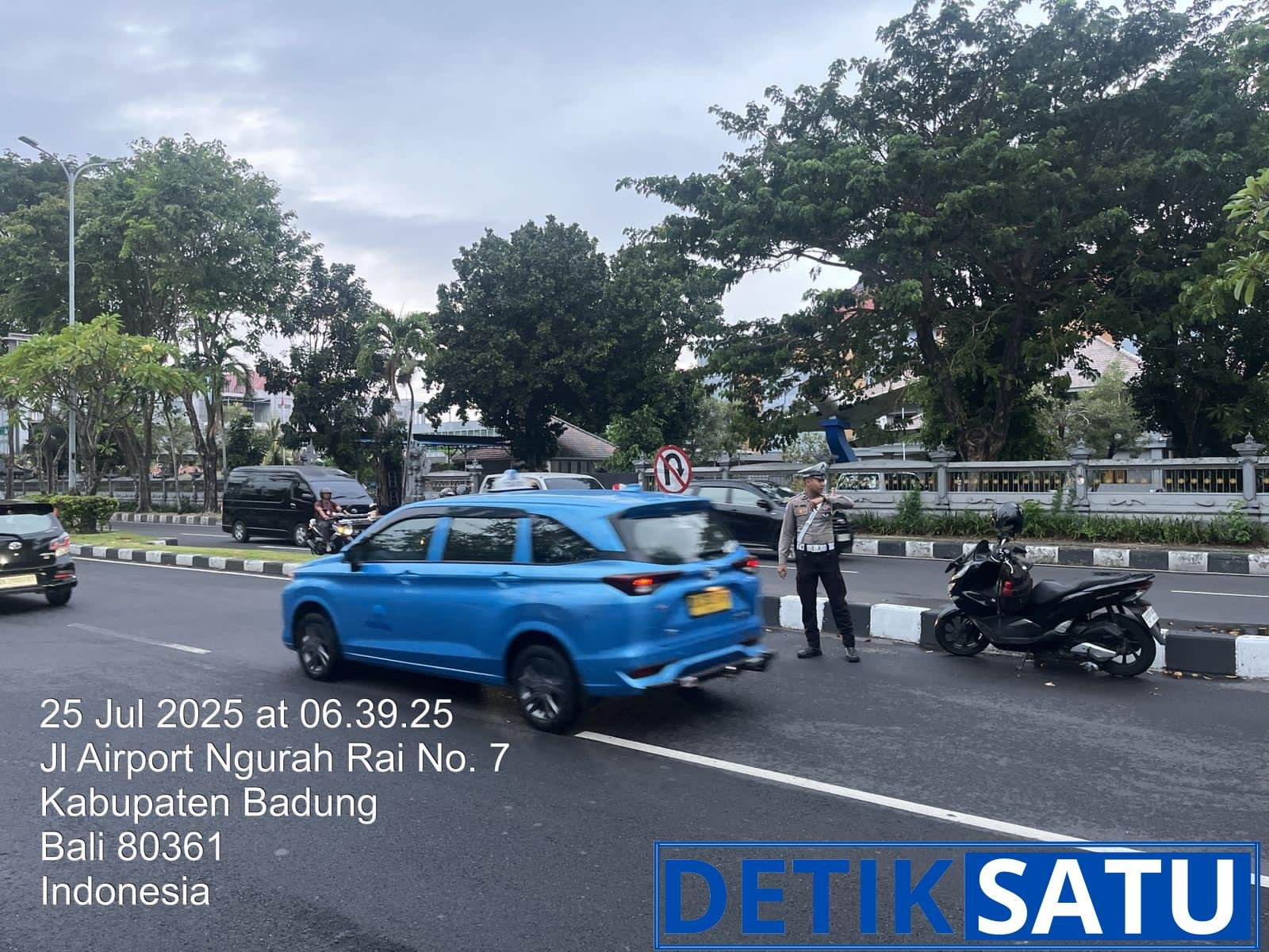 Guna mengantisipasi potensi gangguan lalu lintas dan menjaga kelancaran arus kendaraan, Satuan Lalu Lintas (Satlantas) Polres Kawasan Bandara I Gusti Ngurah Rai menggelar kegiatan PG Pagi (potensi gangguan) di titik-titik rawan kemacetan, pada Jumat (25/07/2025) pagi.