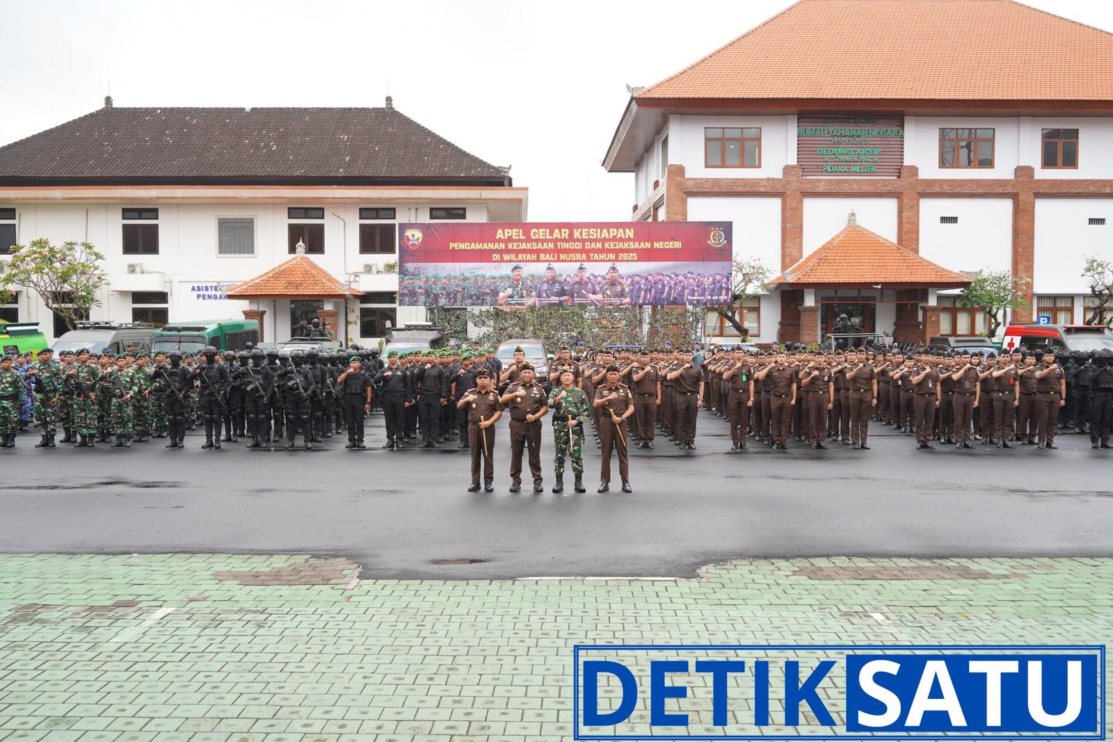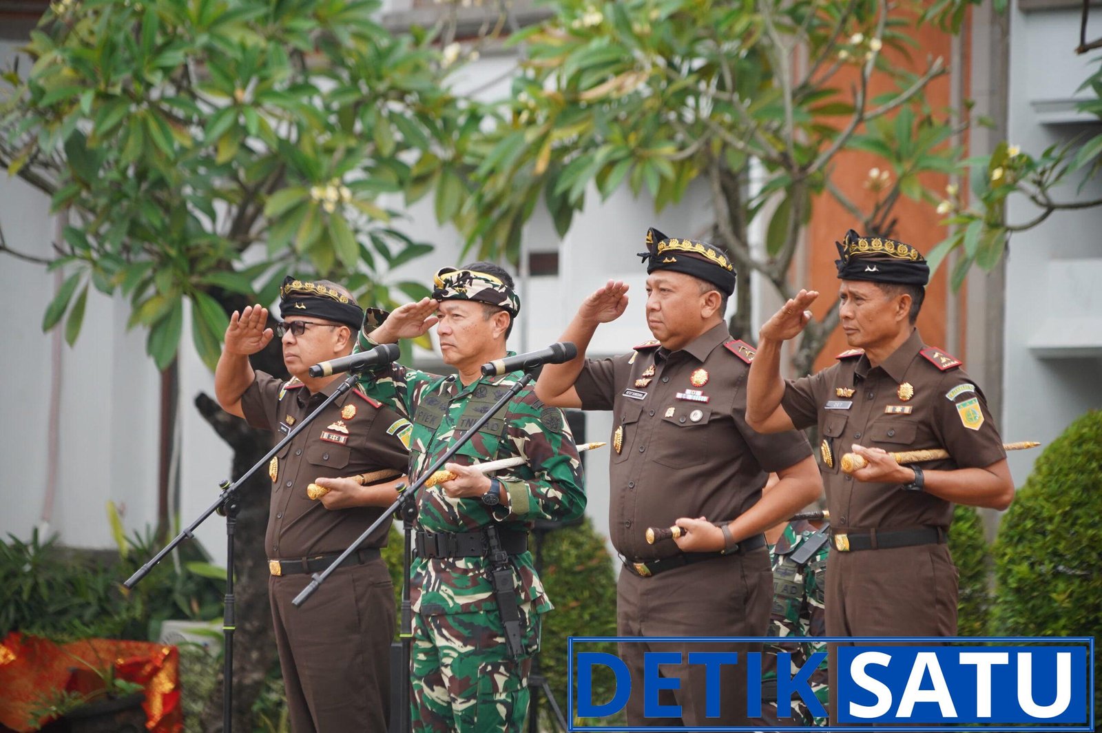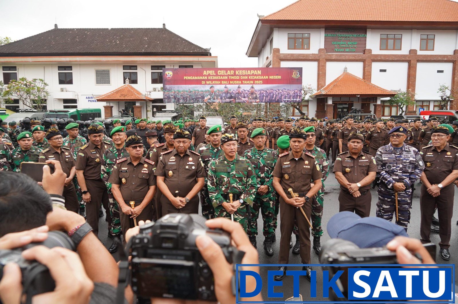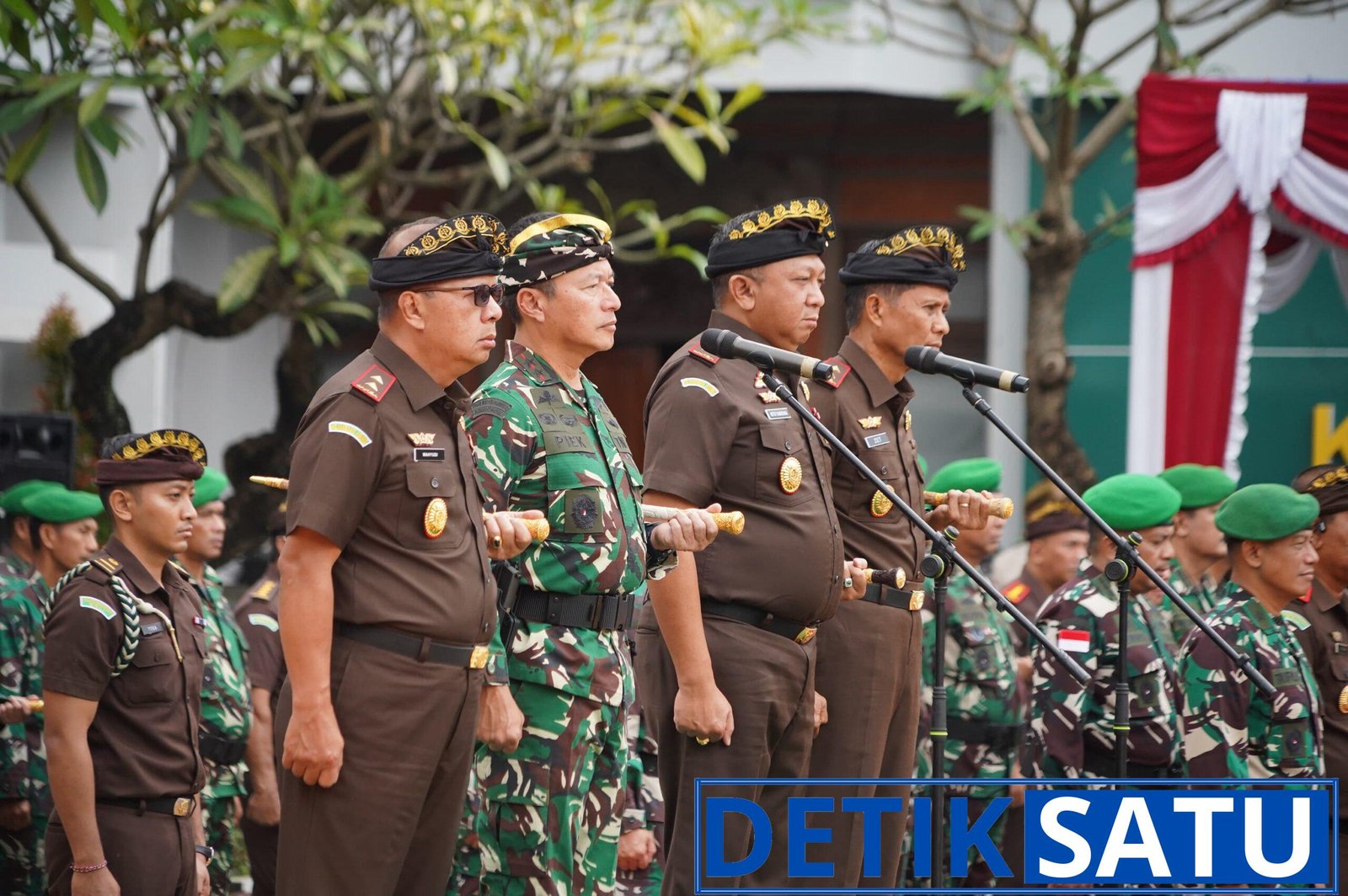 Dalam rangka memperkuat sinergi antar-lembaga negara demi menciptakan penegakan hukum yang aman dan berintegritas sebagai implementasi konkret dari Nota Kesepahaman antara TNI dan Kejaksaan RI, Pangdam IX/Udayana Mayjen TNI Piek Budyakto bersama Kepala Kejaksaan Tinggi (Kajati) Bali Dr. Ketut Sumedana, S.H., M.H., Kajati NTB Wahyudi, S.H., M.H., dan Kajati NTT Zet Tadung Allo, S.H., M.H., memimpin langsung Apel Gelar Pasukan dalam rangka Kesiapan Perbantuan TNI pada Pengamanan Kejaksaan Tinggi dan Kejaksaan Negeri di Wilayah Bali Nusra, yang berlangsung di Lapangan Upacara Kejati Bali, Renon, Denpasar, pada Senin (28/07/2025).