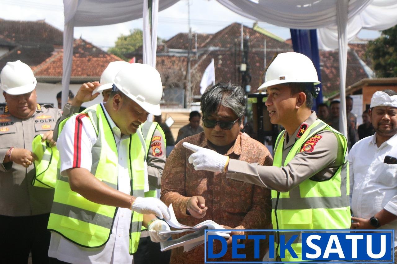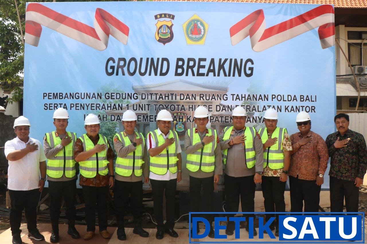 Kepolisian Daerah (Polda) Bali menggelar peletakan batu pertama (groundbreaking) pembangunan Gedung Dit Tahti dan ruang Tahanan Polda Bali serta penyerahan 1 unit Toyota Hiace dan peralatan kantor yang merupakan hibah dari Pemerintah Kabupaten Gianyar, pada Jumat (15/08/2025).