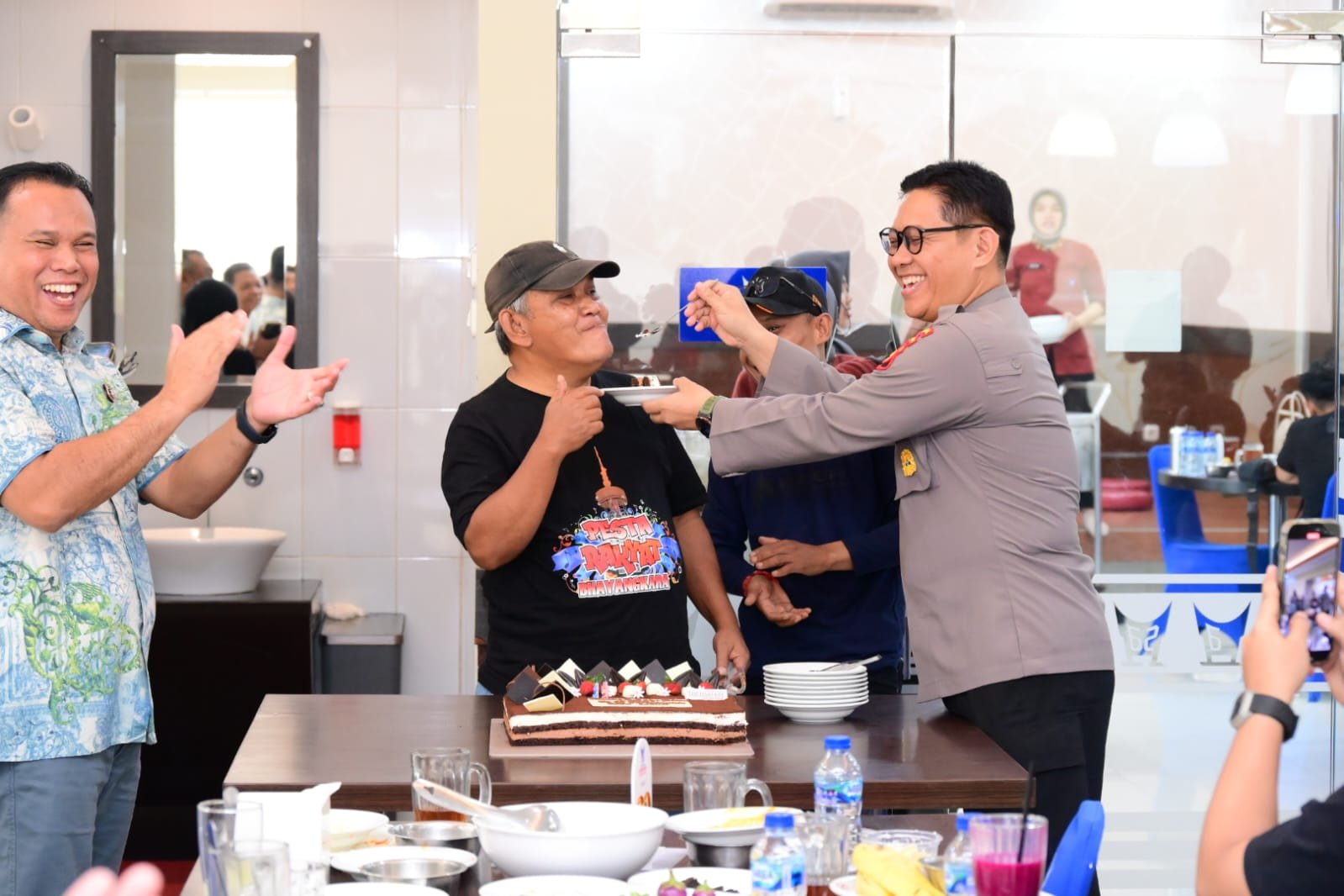 Menambah suasana kebersamaan, dalam kegiatan tersebut Polda Jambi juga memberikan kejutan berupa kue ulang tahun kepada para awak media sebagai bentuk perayaan Hari Pers Tahun 2026. Momen ini disambut antusias dan penuh keakraban, menjadi simbol kebersamaan antara Polri dan insan pers.