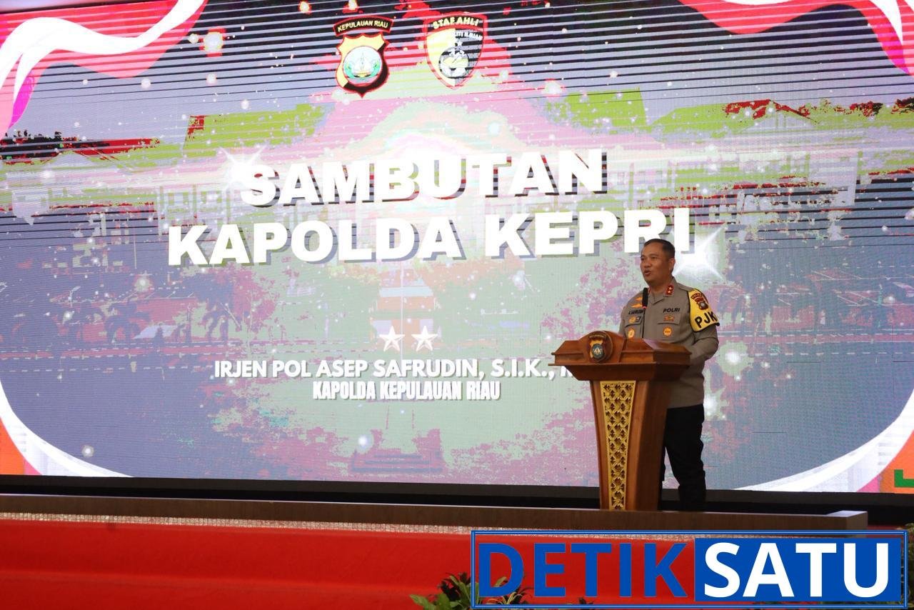 Beliau juga menyoroti berbagai isu strategis di Kepri seperti penyelundupan narkotika internasional, dinamika Laut Cina Selatan, TPPO dan PMI ilegal, serta potensi kerawanan ekonomi. Melalui Program Quick Wins, Polri didorong meningkatkan pelayanan publik tanpa pungli, penegakan hukum yang berkeadilan, penguatan disiplin, dan kehadiran Polri hingga wilayah terdepan seperti Natuna dan Anambas.