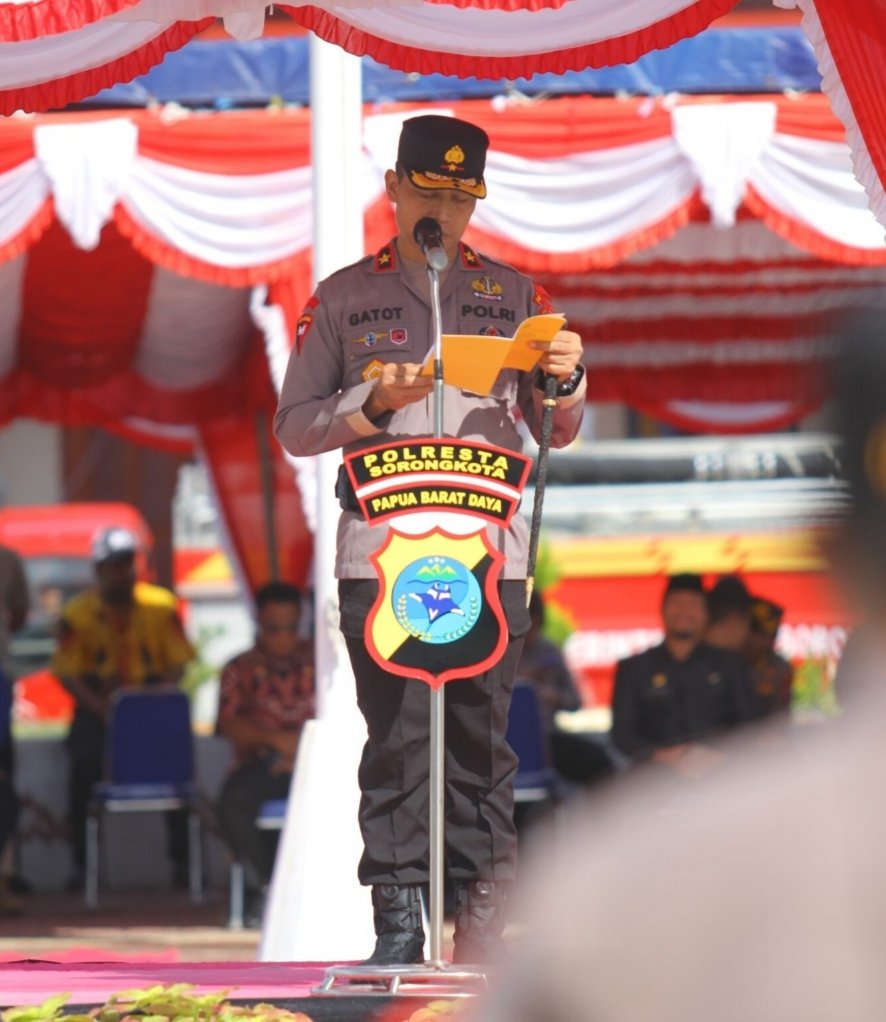 Kapolda Papua Barat Daya membacakan amanat Kapolri yang menekankan pentingnya sinergitas antara TNI, Polri, dan stakeholder terkait dalam memastikan keamanan dan kelancaran arus mudik serta perayaan Idul Fitri 1446H. Kapolri juga menekankan pentingnya pelayanan yang ramah dan responsif kepada masyarakat, serta optimalisasi layanan hotline 110.