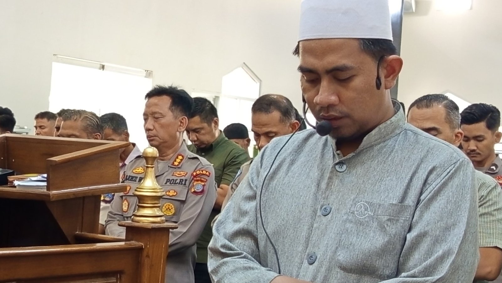 “Shalat ghaib ini kami laksanakan sebagai bentuk solidaritas dan penghormatan kepada tiga anggota Polri terbaik yang gugur saat menjalankan tugas di Polres Way Kanan, Lampung. Semoga almarhum mendapatkan tempat terbaik di sisi Allah SWT dan keluarga yang ditinggalkan diberi ketabahan,” ujar AKBP Sugeng Lestari.