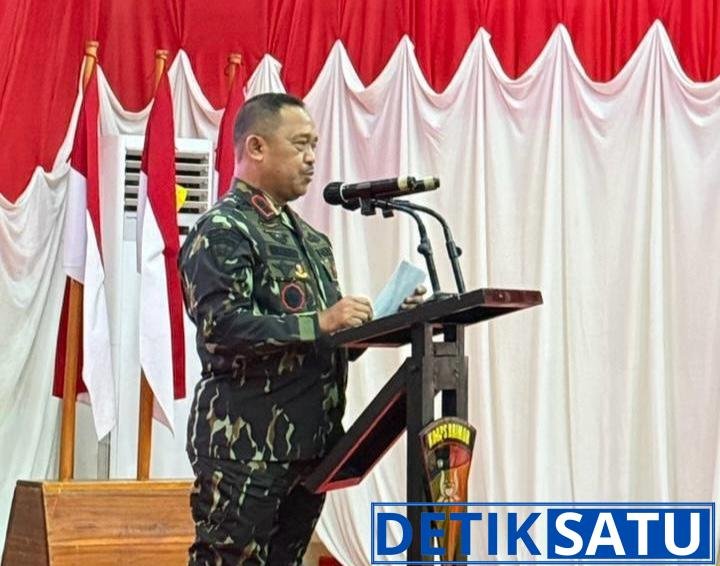 Dalam kesempatan ini Dansat Brimob Sultra Kombes Pol. Sugianto Marweki, S.I.K., M.Si membacakan sambutan Komandan Korps Brimob Polri Komjen Pol. Ramdani Hidayat, S.H.