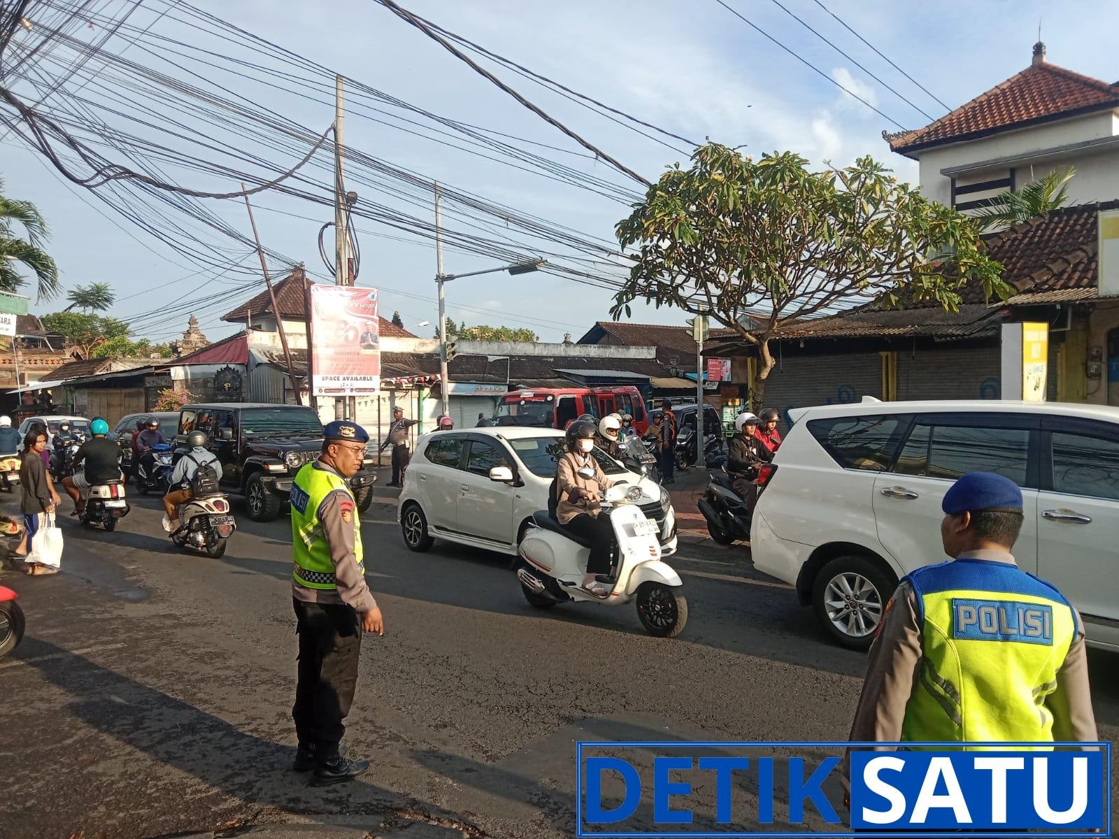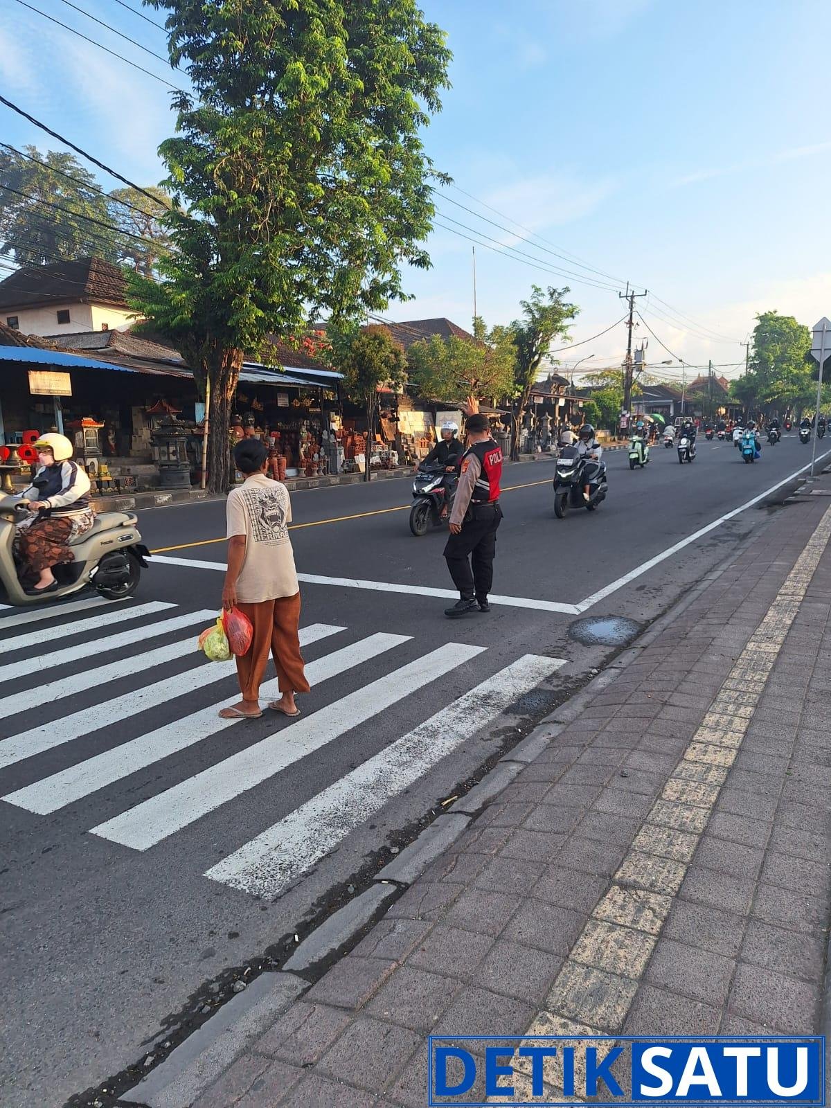 Personil Kepolisian Resor (Polres) Badung melaksanakan kegiatan pengaturan lalu lintas (Gatur Lalin) pagi hari di sejumlah titik strategis di wilayah hukum Polres Badung, pada Senin (08/09/2025).