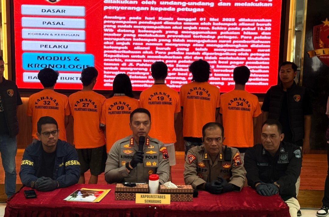 “Ada enam orang kita tetapkan sebagai tersangka. Semuanya memenuhi dua alat bukti, dan unsurnya memenuhi dalam pelanggaran pasal 214 sub 170 KUHP, mereka memiliki peran yang berbeda-beda dalam melakukan aksi anarkis tersebut, ada yang menyusun rencana untuk membuat aksi unjuk rasa berakhir rusuh termasuk penggunaan pakaian berwarna hitam, ada yang merusak fasilitas umum, melempar petugas pengamanan dengan batu, kayu dan benda lain serta melakukan aksi lain yang membahayakan dan melukai petugas”, ungkap Syahduddi di Mapolrestabes Semarang, Sabtu (4/5).