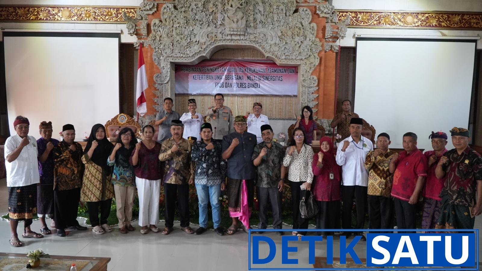 Kepolisian Resor (Polres) Bangli bersama Forum Kerukunan Umat Beragama (FKUB) Kabupaten Bangli menggelar kegiatan pembinaan peningkatan kualitas kerukunan, keamanan, dan ketertiban umat beragama. Kegiatan ini dilaksanakan di Kantor PHDI Kabupaten Bangli, pada Selasa (02/09/2025).
