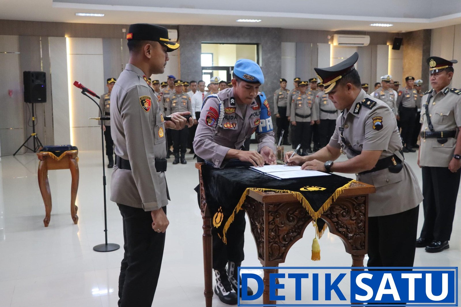 Demak detiksatu.id – Kepolisian Resor (Polres) Demak, Jawa Tengah, menggelar upacara serah terima jabatan (sertijab) untuk sembilan perwira di internal kepolisian. Rotasi jabatan ini meliputi Kepala Bagian (Kabag), Kepala Satuan (Kasat), dan Kepala Kepolisian Sektor (Kapolsek).