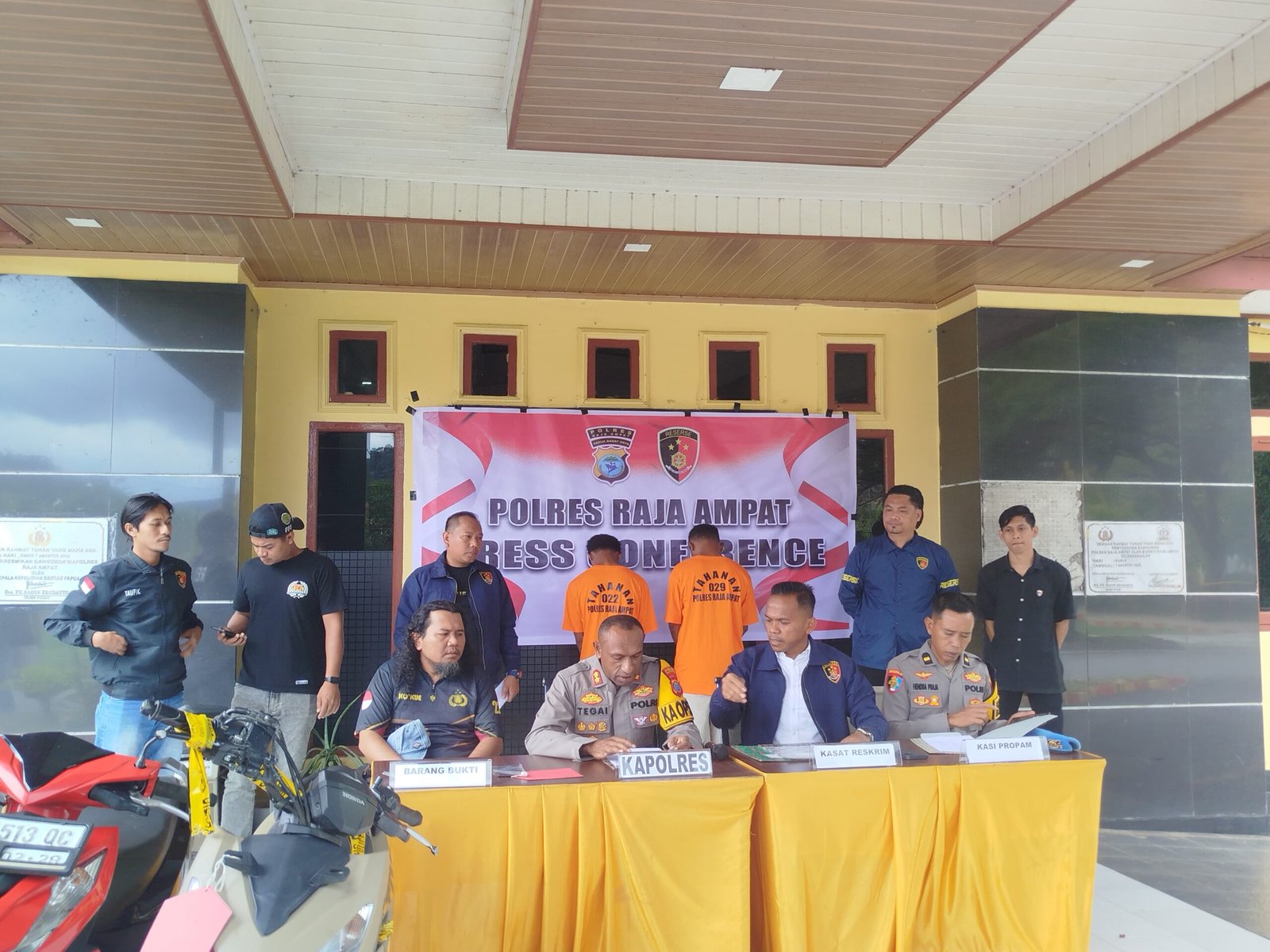 Dalam konferensi pers di Mapolres Raja Ampat, Jumat (13/2/2026), Kapolres Raja Ampat, AKBP Jems Oktovianus Tegai, S.I.K., didampingi Kasat Reskrim Iptu Arantaun, S.H., menjelaskan bahwa penangkapan ini didasari oleh dua laporan polisi (LP) tertanggal 11 Februari 2026. Para pelaku diketahui melancarkan aksinya di dua penginapan berbeda hanya dalam kurun waktu kurang dari satu jam.