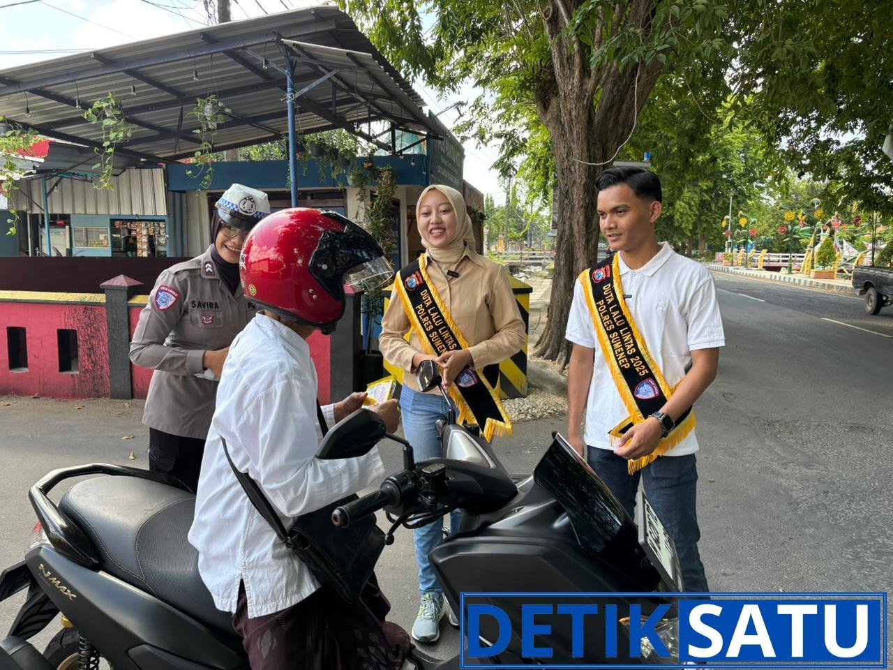 Sumenep, Detiksatu.id – Dalam upaya meningkatkan kesadaran masyarakat akan pentingnya tertib berlalu lintas, Satuan Lalu Lintas (Satlantas) Polres Sumenep Polda Jatim menggelar kegiatan “Polantas Menyapa bersama Duta Lalu Lintas 2025” di Pos KTL Simpang 3 Stadion Sumenep, Selasa (14/10/2025).