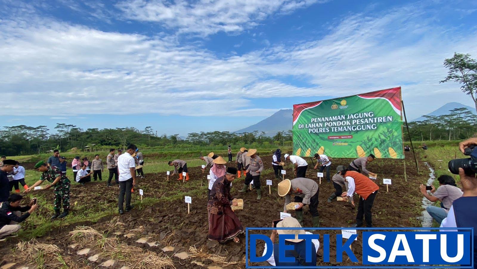 Polres Temanggung Berkolaborasi dengan Ponpes Miftakhul Mubtadi’in Tanam Jagung, Pupuk Jiwa Nasionalisme dan Ketahanan Pangan