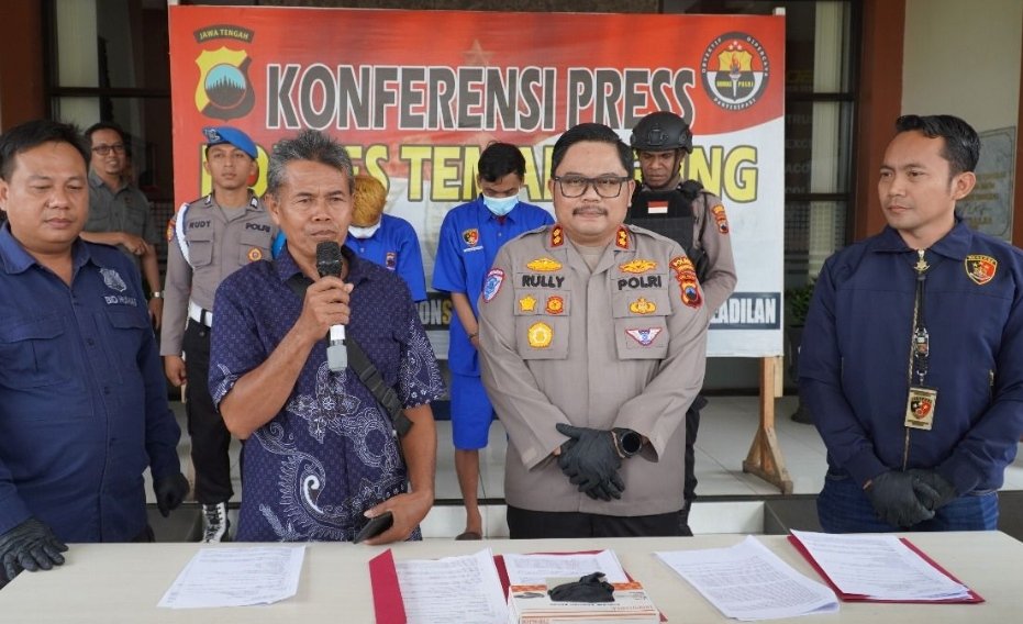 Dihadapan awak media pada saat konferensi pers, Kapolres Temanggung AKBP Rully Thomas mengatakan kedua tersangka diamankan petugas atas laporan korban Bakhrodin (55) Warga Bulu Temanggung yang merasa tertipu dan curiga kepada kedua pelaku yang menyewa barang-barang peralatan miliknya berupa set Scafolding, Catwalk, Jack base dan Joint pin dengan alasan akan digunakan untuk proyek di Desa Gambasan Kecamatan Selopampang Temanggung.