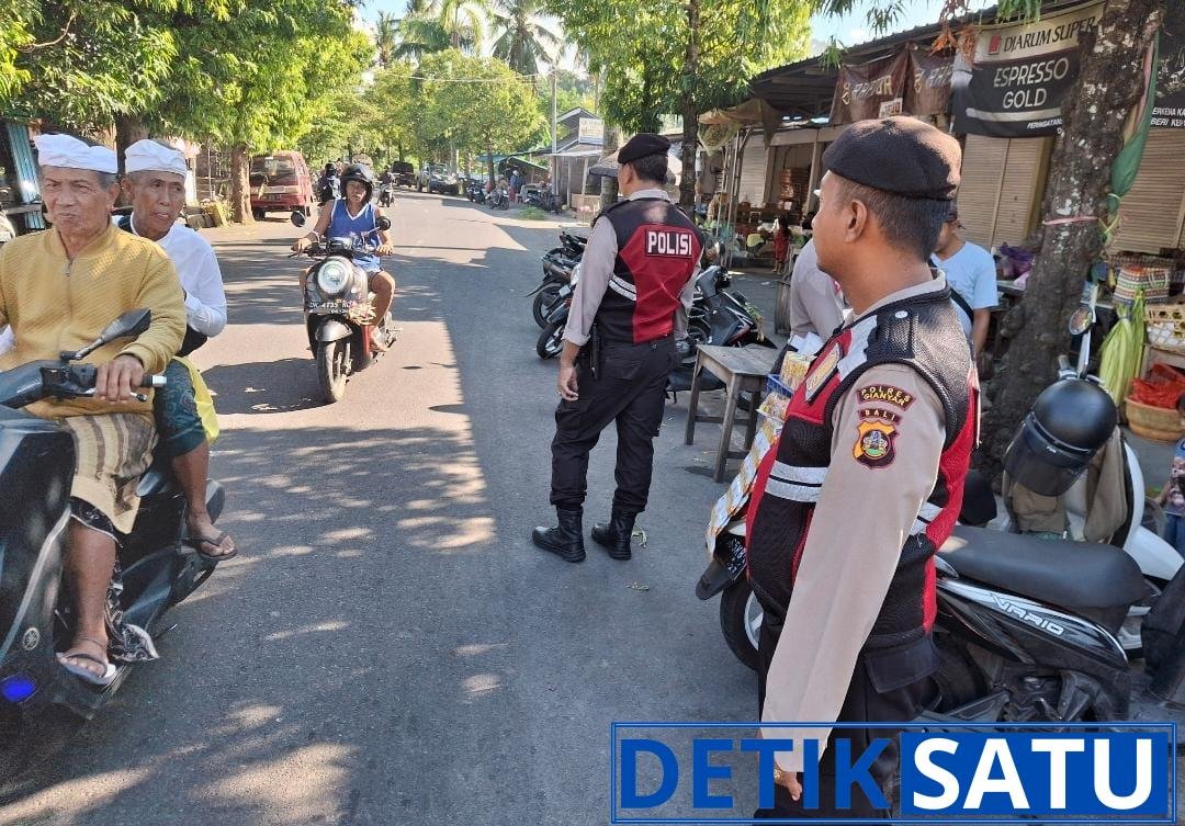 Polsek Gianyar Amankan dan Atur Lalin Pasar Samplangan Jelang Hari Raya Saraswati
