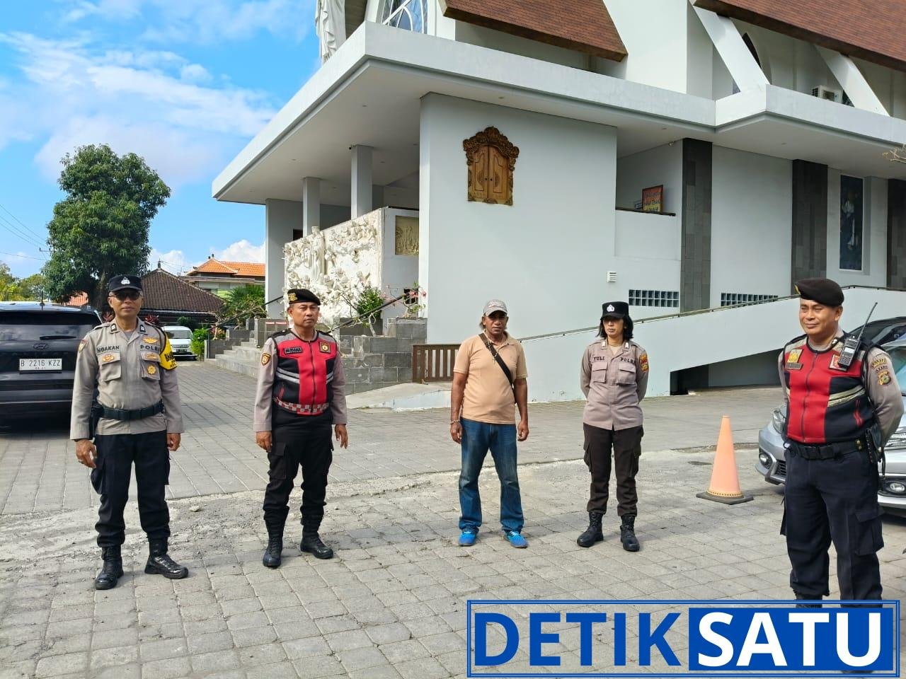 Polsek Gianyar Amankan Misa Minggu Gereja Santa Maria Ratu Rosari