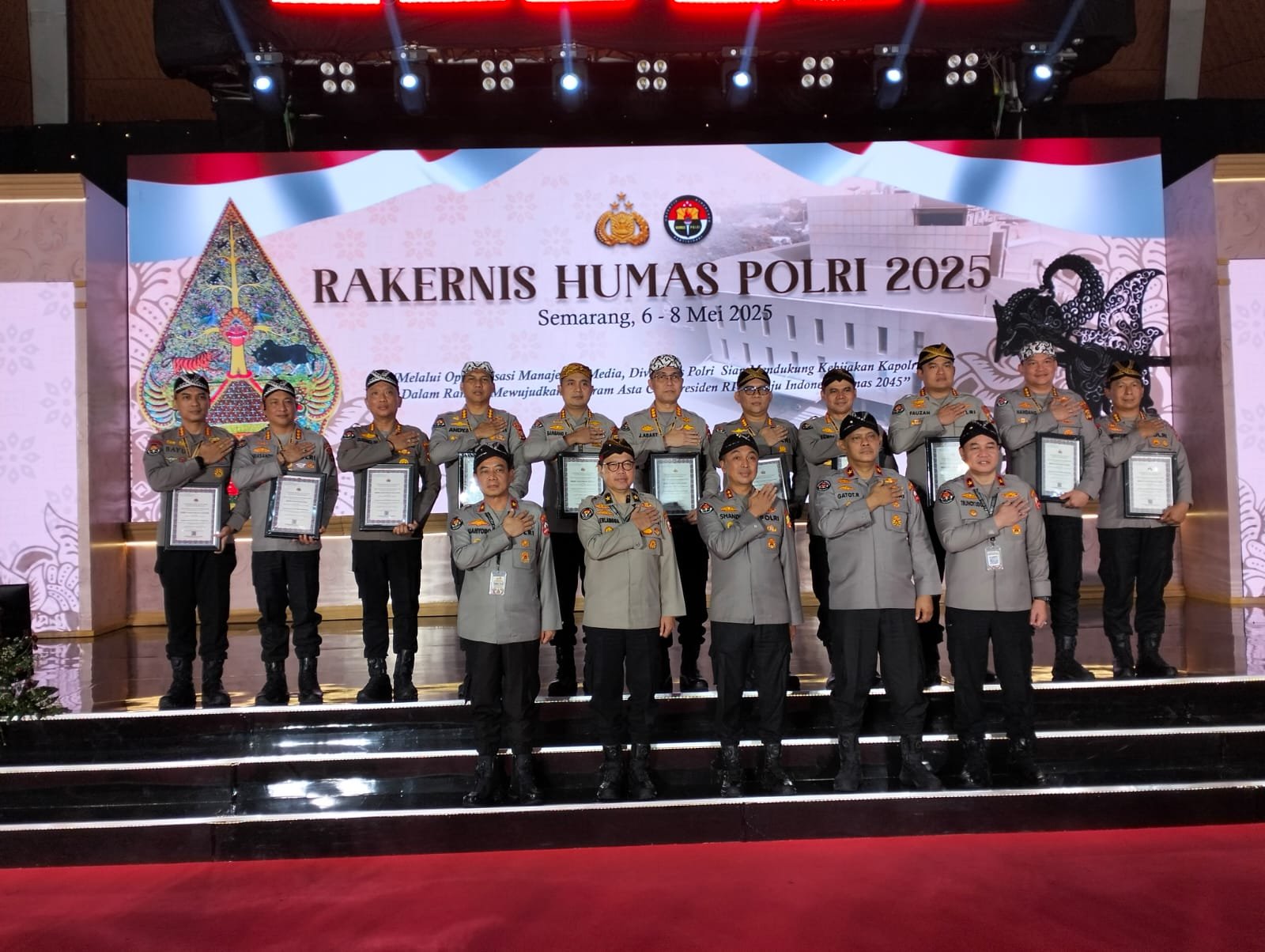 Dua penghargaan tersebut diserahkan langsung oleh, Kadivhumas Polri Irjen Pol Dr. Sandi Nugroho, S.IK., M.Hum kepada, Kabidhumas Polda Kalteng Kombes Pol Erlan Munaji, S.IK., M.Si. dalam rapat kerja teknis (Rakernis) Humas Polri Tahun 2025 di Gedung Serbaguna, Akademi Kepolisian (Akpol) Semarang, Jawa Tengah, Rabu (7/5/2025).