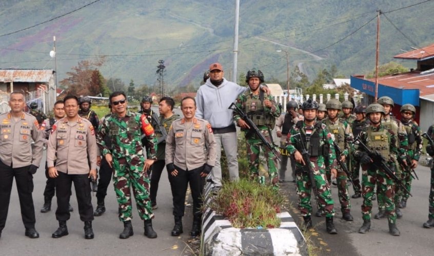Dengan rutin melaksanakan patroli berjalan kaki yang dipimpin langsung oleh Kapolres Puncak Jaya AKBP Kuswara, S.H., S.I.K., M.H dan Dandim 1714/PJ Letkol Inf. Irawan Setya Kusuma, S.Hub.Int bersama Pamatwil Dir Reskrimsus Polda Papua Tengah KBP. Hesman S. Napitupulu, S.H., S.I.K., M.H dan Dir Binmas KBP. Deni Herdiana, S.E., S.H., M.M., M.H bersama ratusan Personel Gabungan TNI-POLRI yang ada di Kabupaten Puncak Jaya.