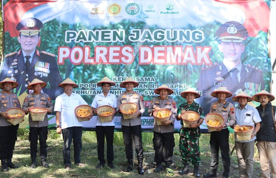 Demak – Kapolres Demak AKBP Ari Cahya Nugraha memimpin kegiatan panen jagung di kawasan hutan petak, Desa Wonosekar, Kecamatan Karangawen, Kabupaten Demak untuk mendukung Program Astacita sebagai bagian dari upaya mencapai swasembada dan ketahanan pangan nasional.