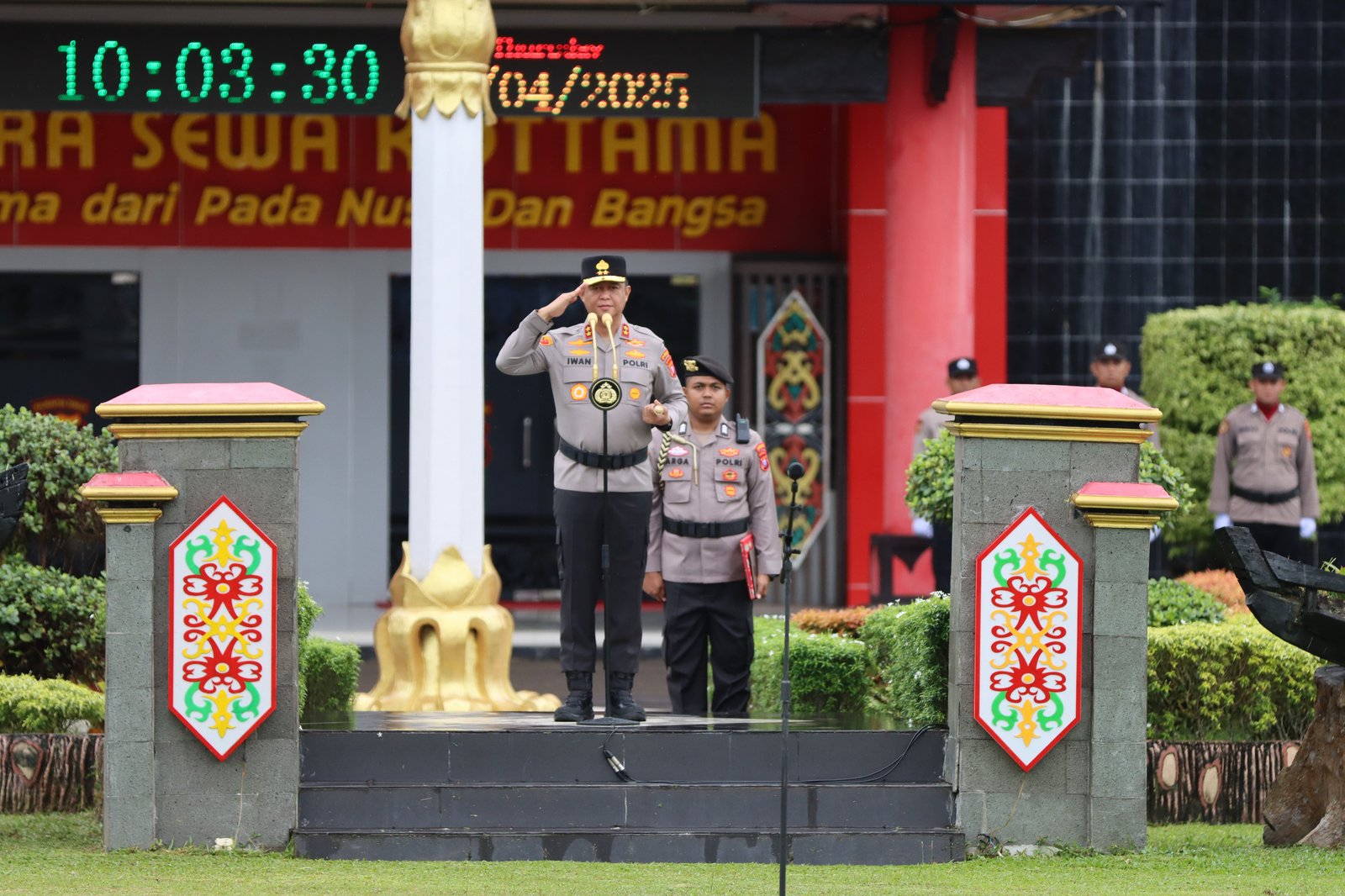 Bertindak selaku Inspektur upacara (Irup) Kapolda Kalteng, Irjen Pol Iwan Kurniawan, S.IK., M.Si. dan dihadiri Wakapolda Brigjen Pol Dr. Rakhmad Setyadi, para pejabat utama Polda serta seluruh Personel Polda Kalteng.