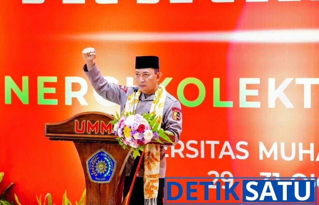 Jatim, Detiksatu.id – Kapolri Jenderal Pol. Drs. Listyo Sigit Prabowo M.Si., memberikan sambutan sekaligus menutup acara Tanwir ke-XXXIII IMM di UMM Dome, Malang, Jawa Timur (Jatim), Jumat, 31 Oktober 2025. Dalam kesempatan ini, Jenderal Pol. Listyo Sigit mengajak seluruh peserta untuk berkontribusi dalam rangka mendukung program Pemerintah Indonesia.