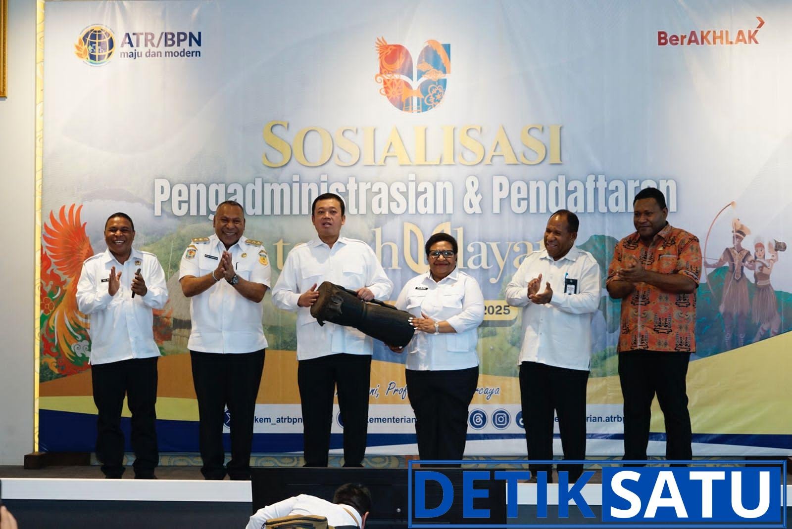 Jayapura, Detiksatu.id – Wakil Menteri Dalam Negeri (Wamendagri) Ribka Haluk menegaskan bahwa kebijakan Otonomi Khusus (Otsus) Papua memberikan ruang yang kuat bagi masyarakat hukum adat, khususnya Orang Asli Papua (OAP), dalam pengakuan dan pelindungan hak atas tanah ulayat. Hal itu disampaikan Ribka pada acara Sosialisasi Pengadministrasian dan Pendaftaran Tanah Ulayat Provinsi Papua Tahun 2025 di Auditorium Kantor Gubernur Papua, Kota Jayapura, Rabu (19/11/2025).